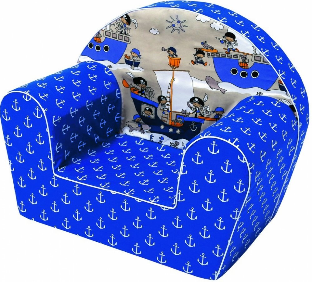 Toto krásné křesílko s pirátským motivem má snímatelný prošívaný potah, který je lehce pratelný. Křesílko je vyrobeno z měkké pěny (molitan). Díky pěně je křeslo nejen pohodlné, ale také super lehké a stabilní. Dítě může své křesílko znovu a znovu přemisťovat po svém pokojíčku. Výška sedáku: 13,5 cm Šířka sedáku: 43 cm Hloubka sedáku: 23 cm Výška opěradla: 29 cm