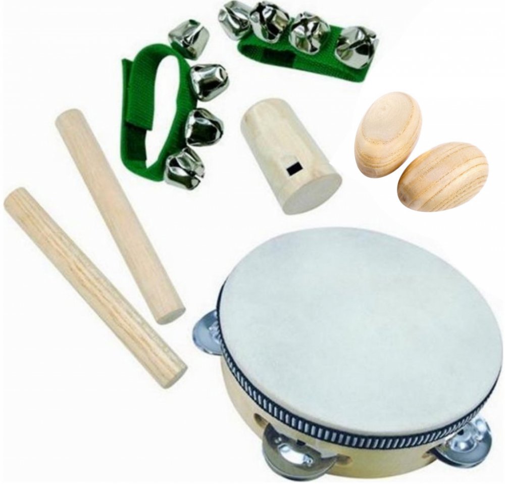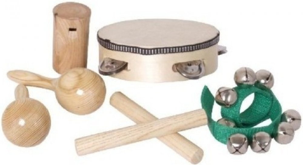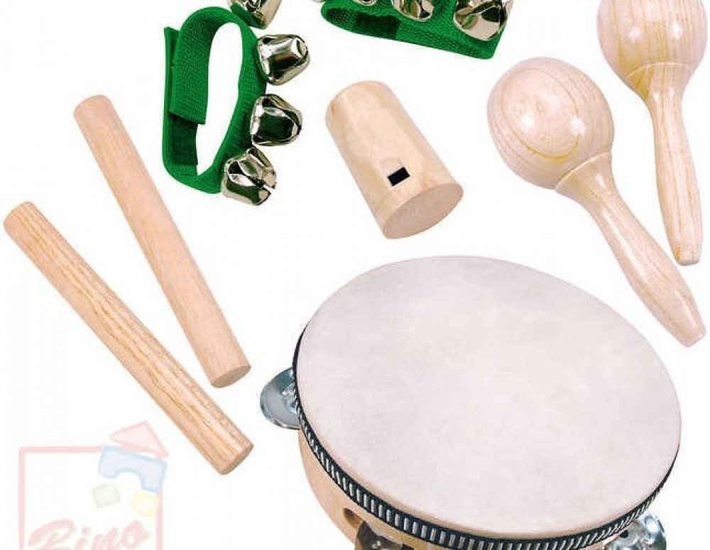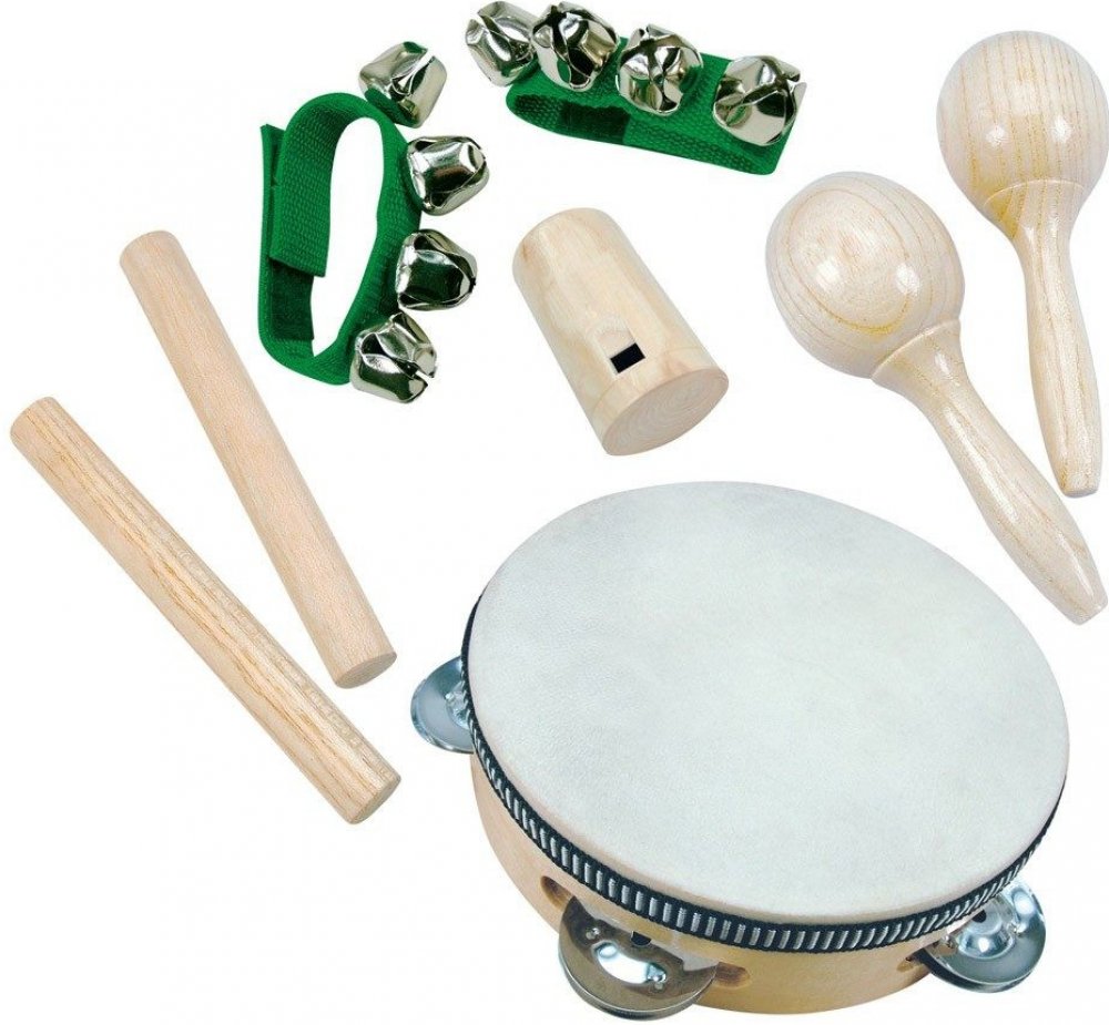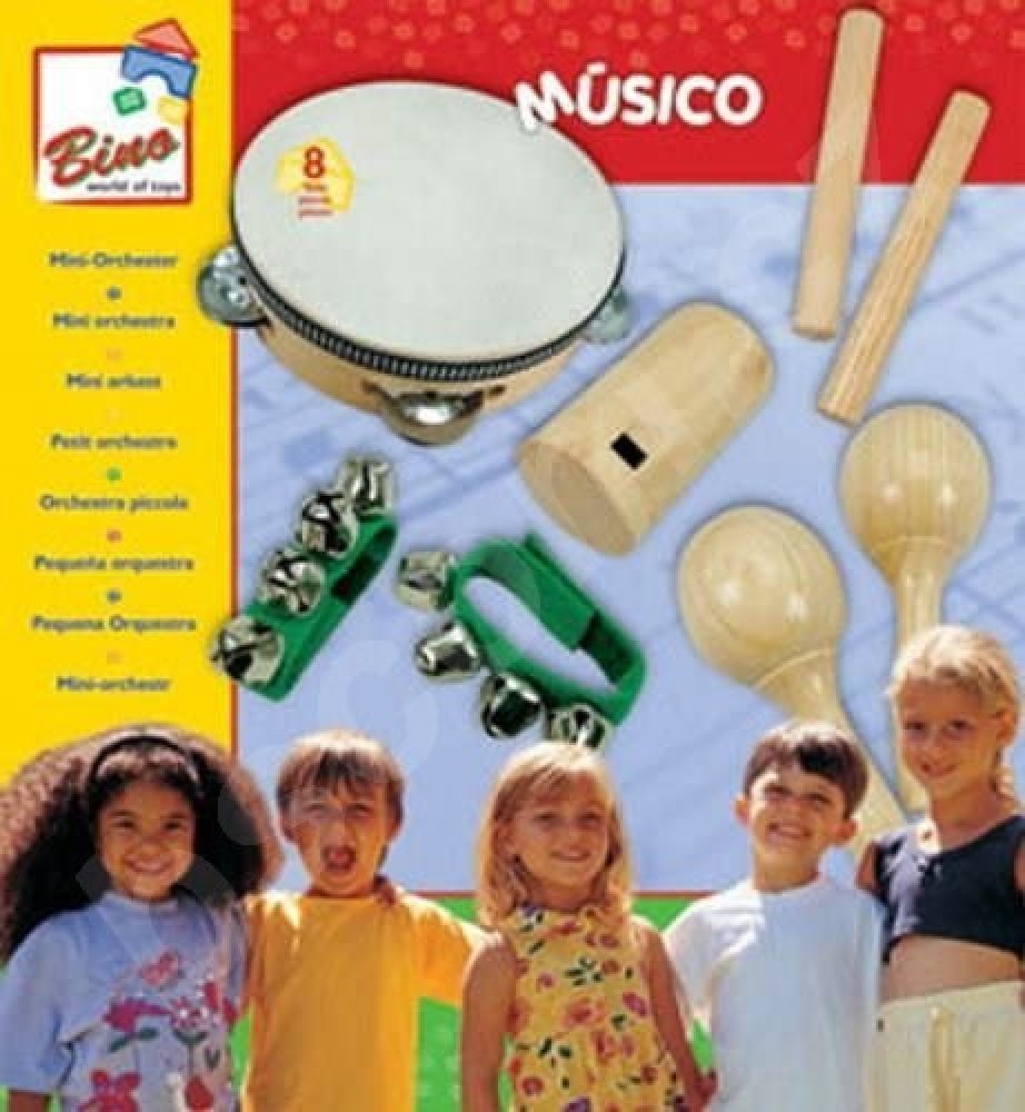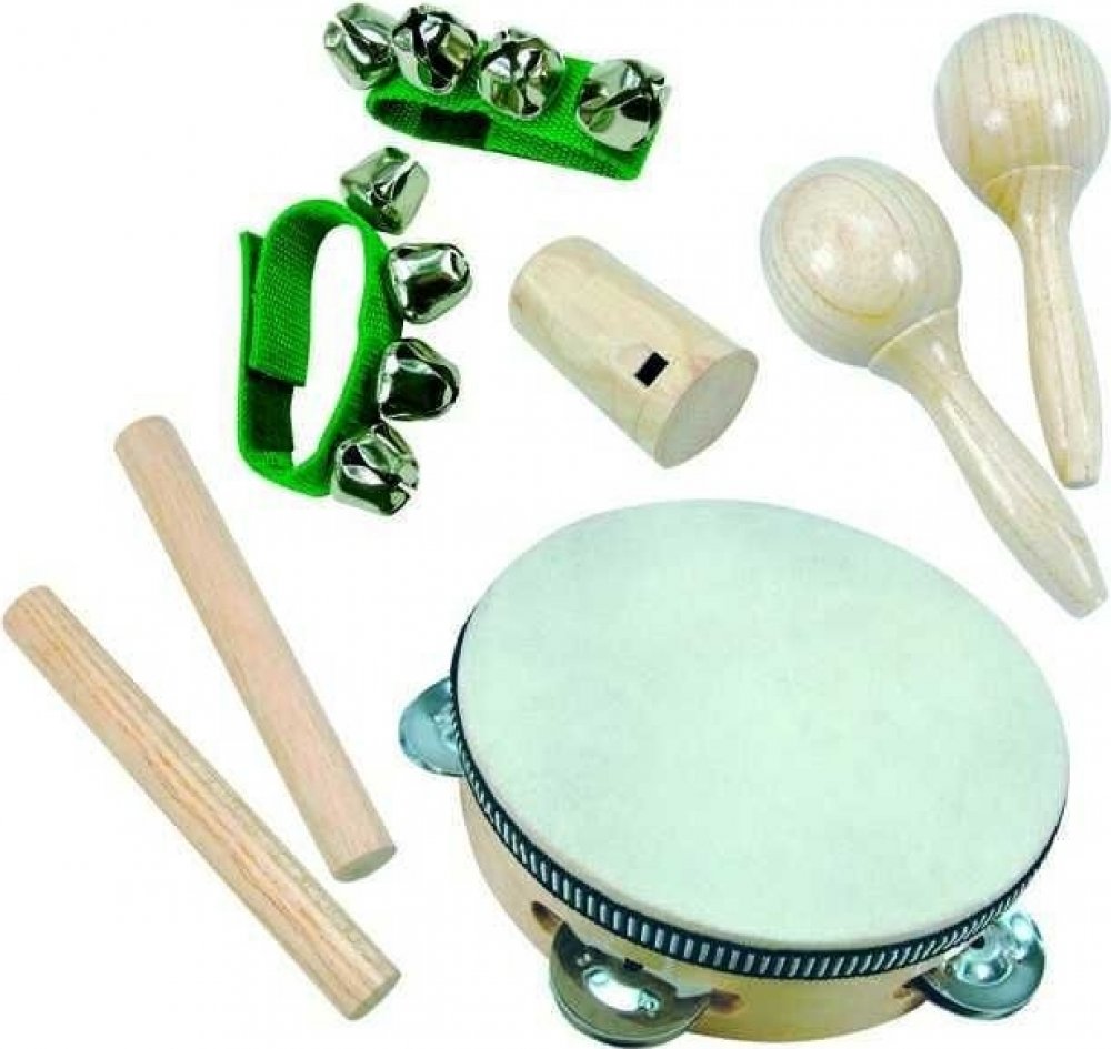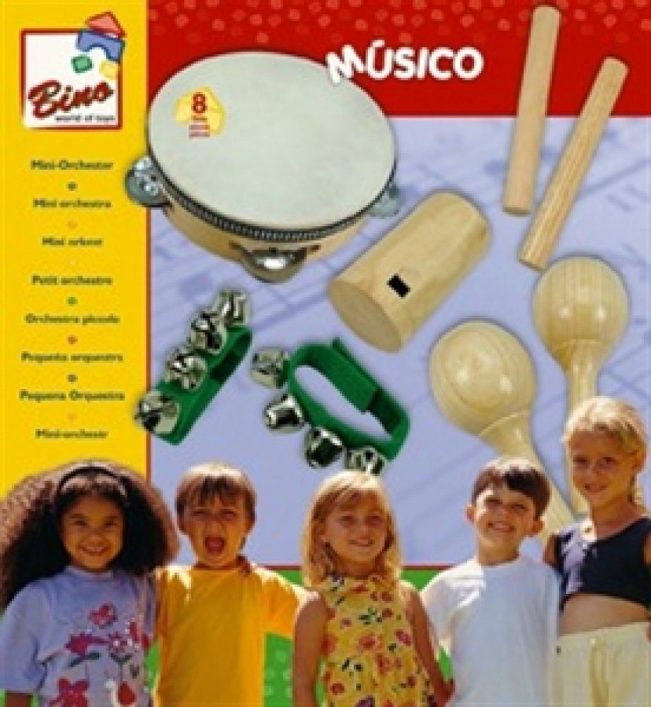 Mini orchestr pro malé muzikanty, který se vejde do jedné krabice. Balení obsahuje ozvučná dřívka, rumba koule, tamburínu a rolničky.