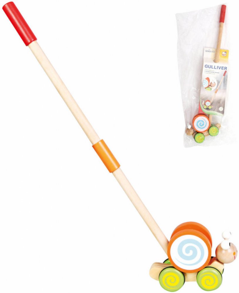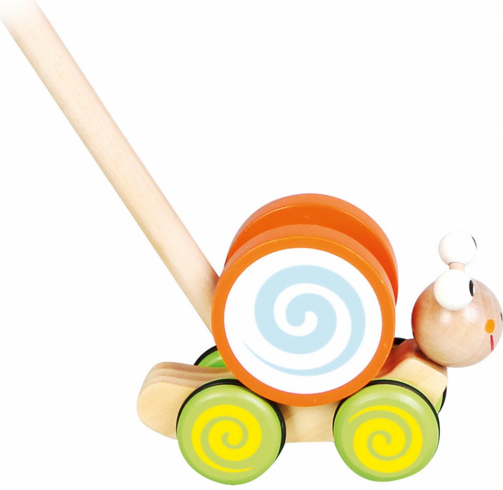 Vysoce kvalitní oblíbená dřevěná hračka v designu šneka. Hračka, kterou může dítě tlačit před sebou, pomáhá rozvíjet motorické schopnosti. Děti se také tímto způsobem učí rozlišovat barvy a zvířata. Jezdík má pogumovaná kolečka pro tichý chod. Děti ho mohou strkat nebo tahat doma i venku. Krásný dárek pro Vaše dítě.