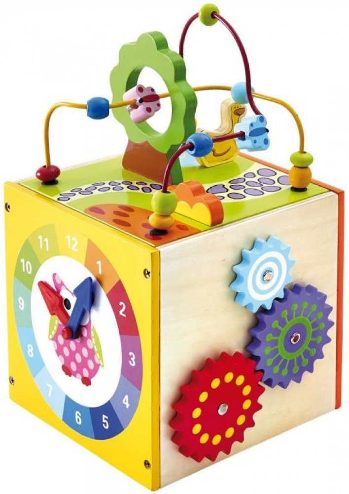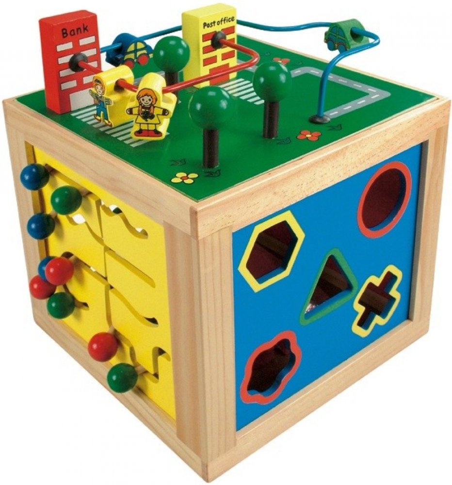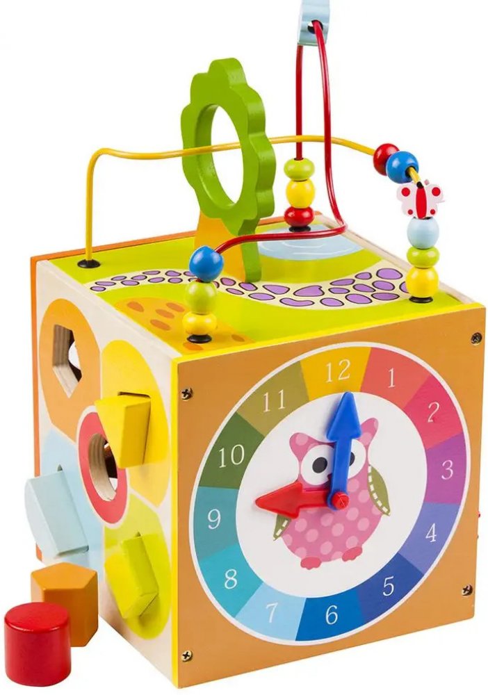 Tato hračka je vyrobena z kvalitního dřeva. Barvy jsou zdravotně nezávadné. Kostka napomáhá rozvoji motoriky dětí, vnímání tvarů, s její pomocí lze učit hodiny a počítání.