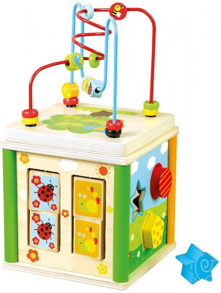 Multifunkční motorická kostka je kvalitní dřevěnou hračkou pro malé šikulky. Díky rozmanitým aktivitám, které mohou děti na každé stěně kostky plnit, procvičují jemnou motoriku ruky, logiku a soustředěnost. Snadno se tak naučí novým dovednostem a to vše formou legrace a zábavy. Multifunkční dřevěná motorická kostka se stane nejen oblíbenou hračkou, ale vzdělávací pomůckou pro vaše malé šikulky.