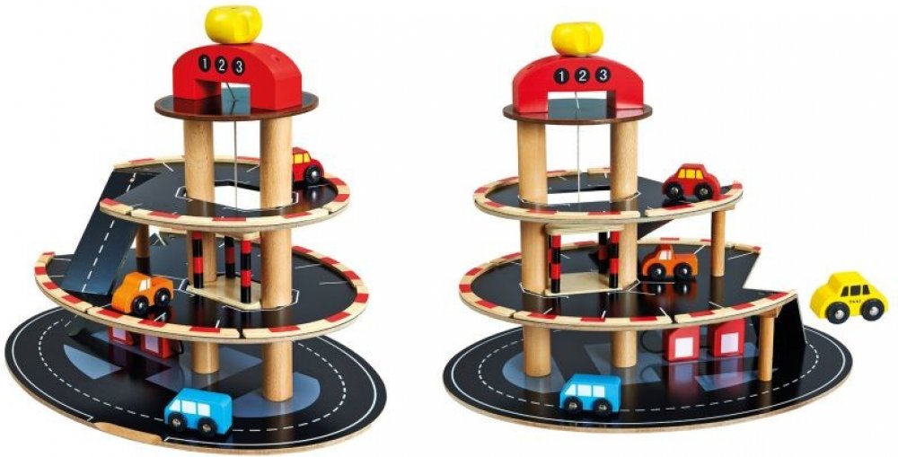 Bino - Parkoviště dřevěné s výtahem, 4 autíčka Parkování patří k nejnáročnějším manévrům s autem. Obzvlášť, když řidič musí zaparkovat na vícepodlažním parkovišti. Natrénujte parkování na dvoupodlažním parkovišti s několika barevnými autíčky nebo se nechejte vyvést výtahem. BINO Europe je nadnárodní firma vyrábějící zejména dřevěné hračky pro děti. Výrobky ze dřeva pod obchodní značkou BINO jsou vyráběny v České republice v Klatovech (dříve pod názvem Olymp Klatovy), jsou vyváženy do celého světa a veškeré hračky mají zdravotní atest, tím splňují všechny normy EU. Firma se zabývá výrobou veškerých druhů dřevěných hraček, mezi velmi oblíbené patří například různé dráhy, obrázkové puzzle, ale taky třeba dětské hudební nástroje. BINO používá oblíbené pohádkové a večerníčkové motivy, které si zamiluje každé dítě.