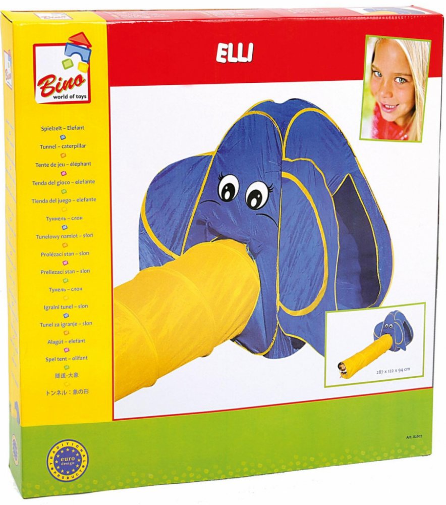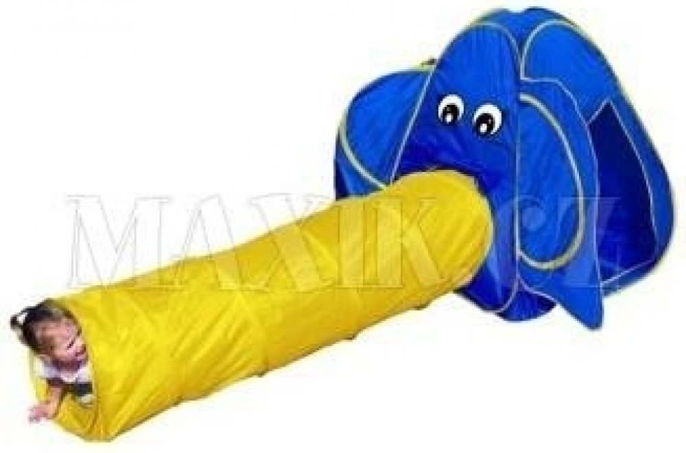 Dětský prolézací stan slon. Prolézací stan s tunelem, se kterým si děti užijí spoustu zábavy a radosti z objevování nových prostorů. Děti milují skrýše, schovávačky a domečky, vytváří si tak kolem sebe vlastní imaginární svět, v němž prožívají svá dobrodružství a hry. Sloní stan je přístupný tunelem i bočními dveřmi. Podpořte dětskou fantazii a pomozte jim postavit vlastní příbytek pro hru i odpočinek. Když se děti věnují jiné činnosti, může stan posloužit i jako úkryt pro hračky. Stan je určen pro vnitřní i venkovní použití na hladkém a suchém podkladu. Jednoduchá montáž, stabilní lehká konstrukce.
