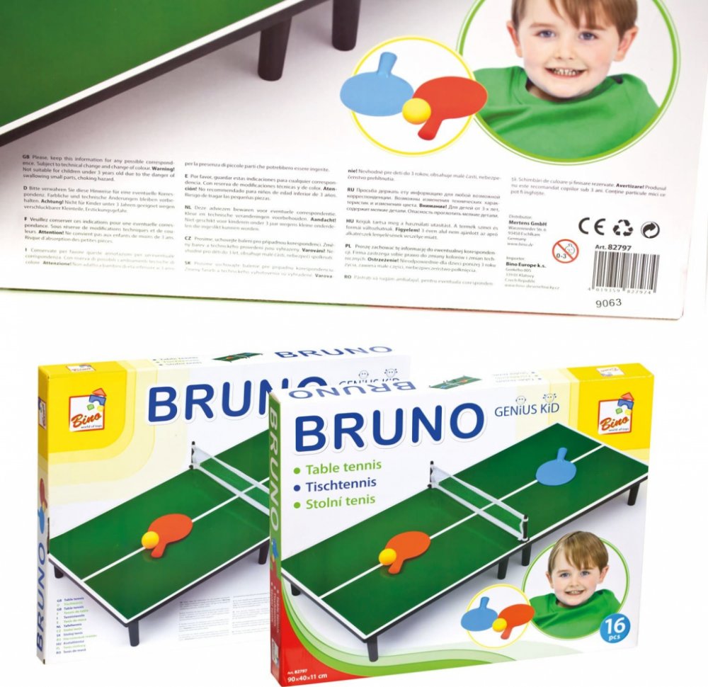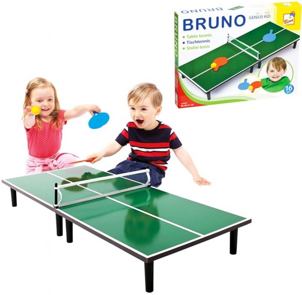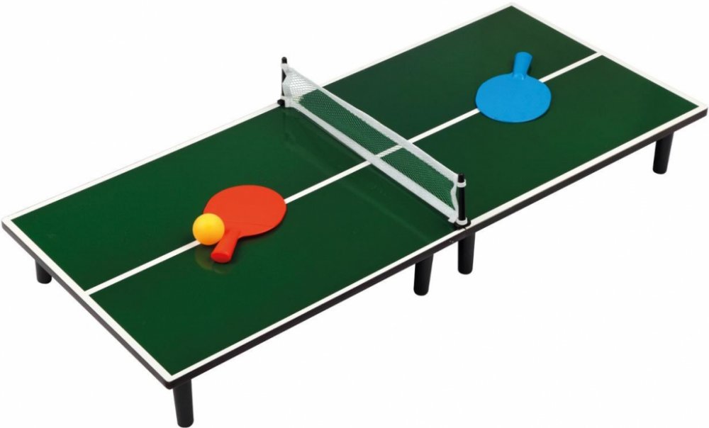 Bino společenská hra Stolní tenis malý Ping-Pong s umístěním na stůl. Velikost 90 x 40 x 11cm. Součástí 2 pálky a míček.