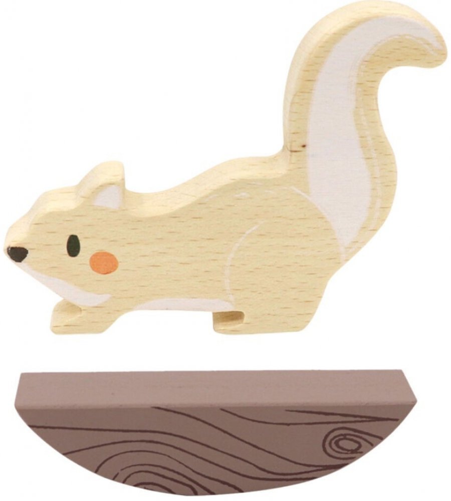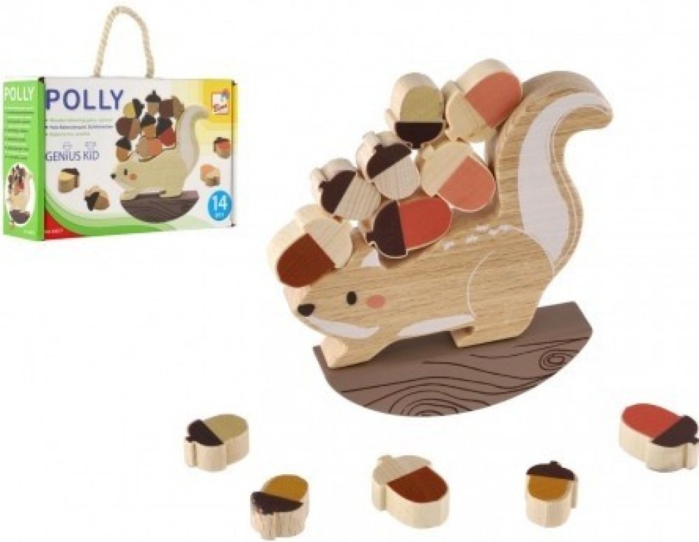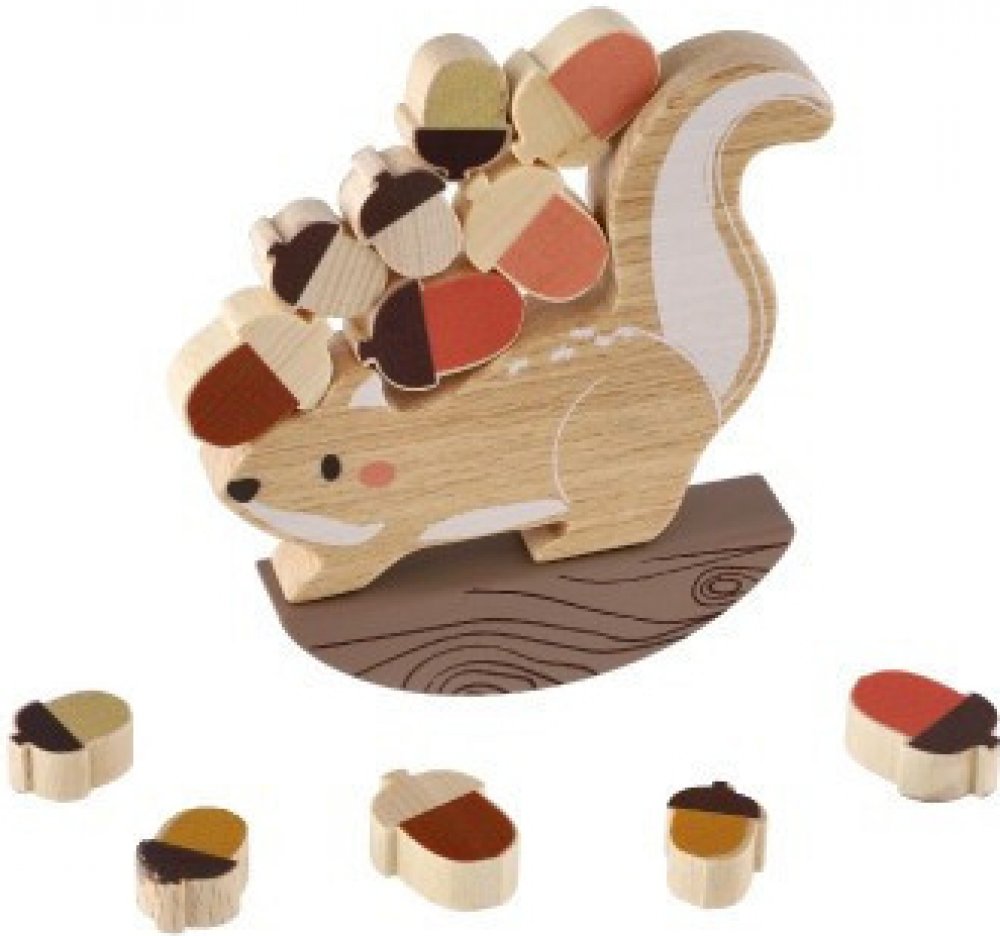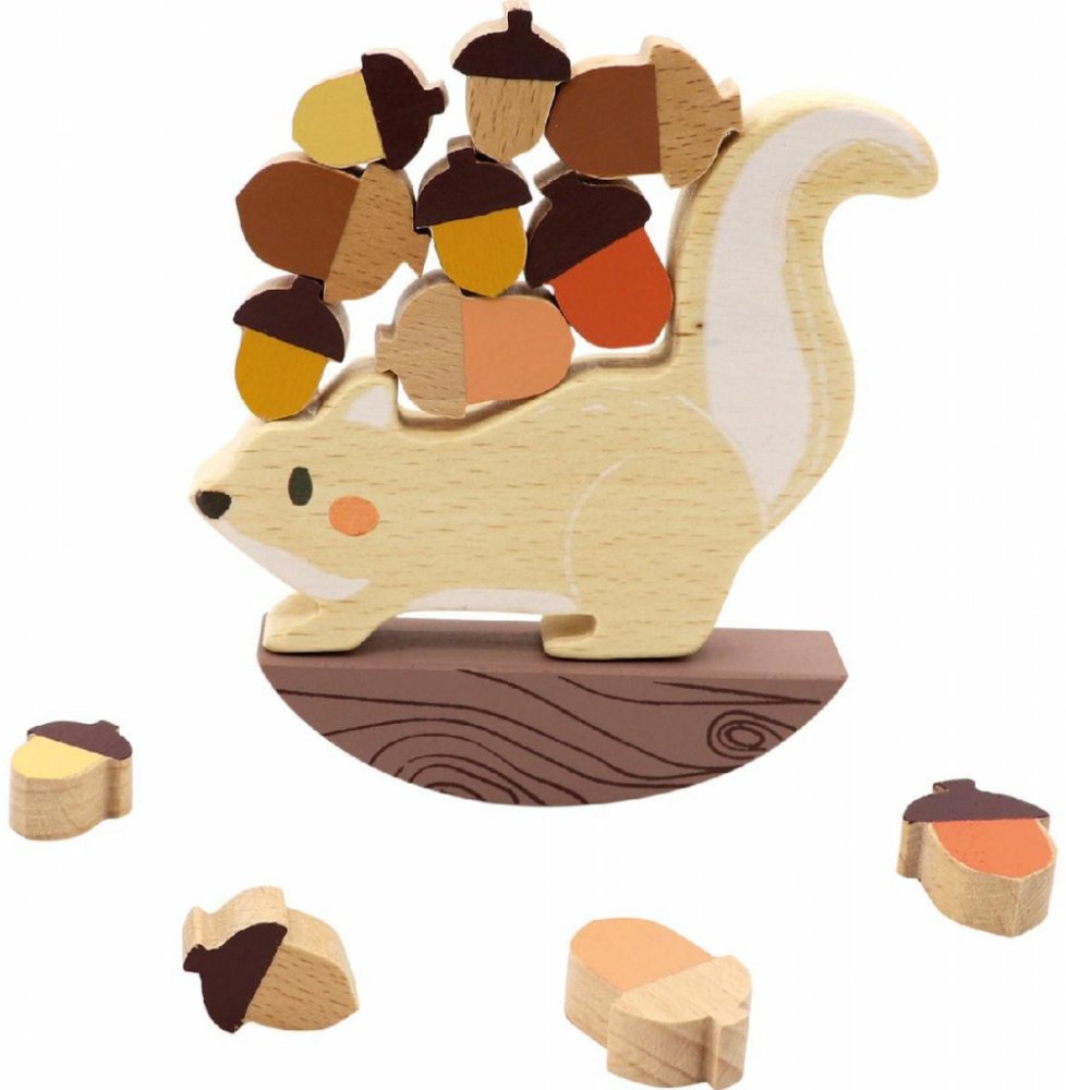 Hra s jednoduchými pravidly a velmi rychle návyková. Veverku se zásobou žaludů je třeba umístit na kulaté dřevo tak, že se vše vyrovná na sebe, aniž by veverka nebo žaludy spadly. Dávejte pozor, protože se kulaté dřevo houpe. Veverka se svými zásobami žaludů musí být v rovnováze, aby všechny nespadly na zem. Ideální pro pochopení konceptu rovnováhy a vyváženosti zábavnou a hravou formou. Hra, kterou můžete hrát sami nebo s rodinou. Počet dílů: 14 ks.