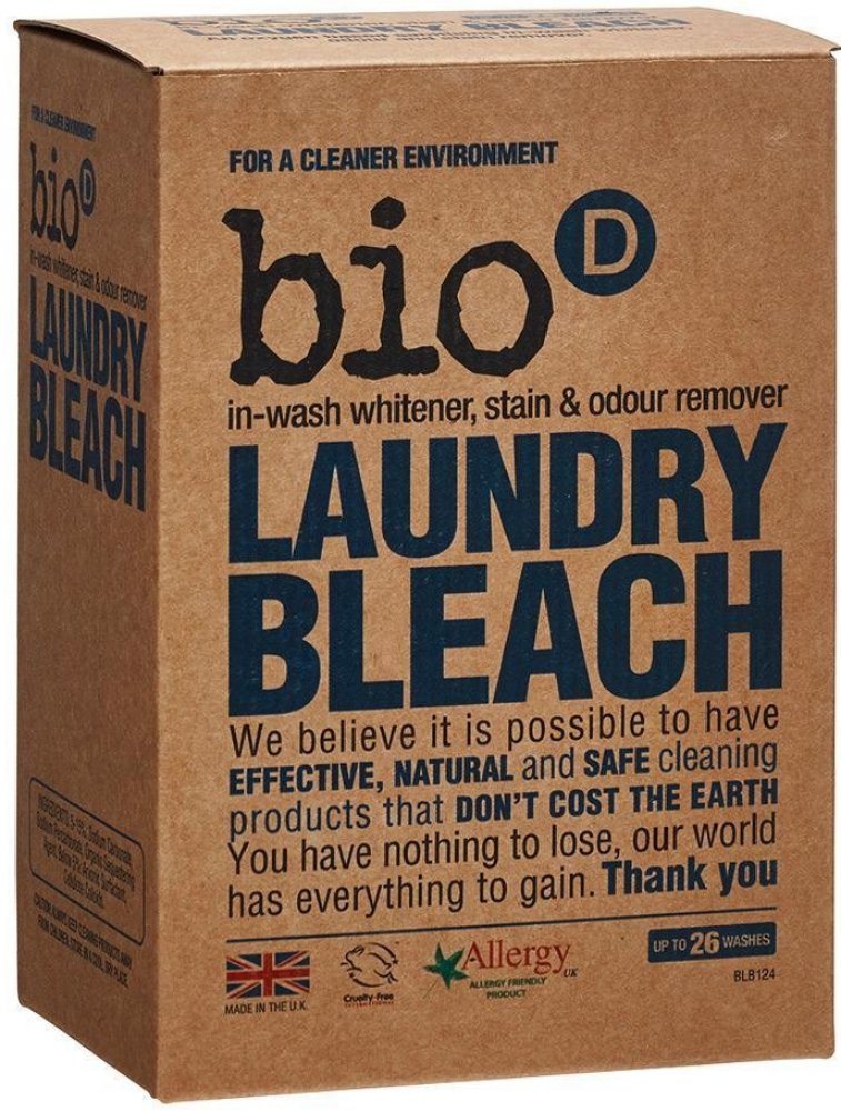 Bělící prostředek a odstraňovač skvrn Bio-D si hravě poradí i s odolnějšími fleky a nečistotou, jako je káva, krev, tráva, červené víno a jiné potraviny. Bělící prostředek skvěle projasní a zvýrazní barvu bílého textilu. Je vhodný i při praní záclon či ložního prádla. Přírodní složení bělidla působí účinně, avšak je šetrné k prádlu i k citlivé pokožce, kterou zbytečně nedráždí. Bělící prostředek je vhodný i pro tu nejcitlivější pokožku, jako jsou alergici a malé děti. Přírodní složení na bázi rostlinných tenzidů a uhličitanu sodného snadno pronikne hluboko do vlákna textilu, kde účinně rozpustí nečistoty, a šetrně tak odstraní flek, aniž by došlo k poškození barevnosti prádla.