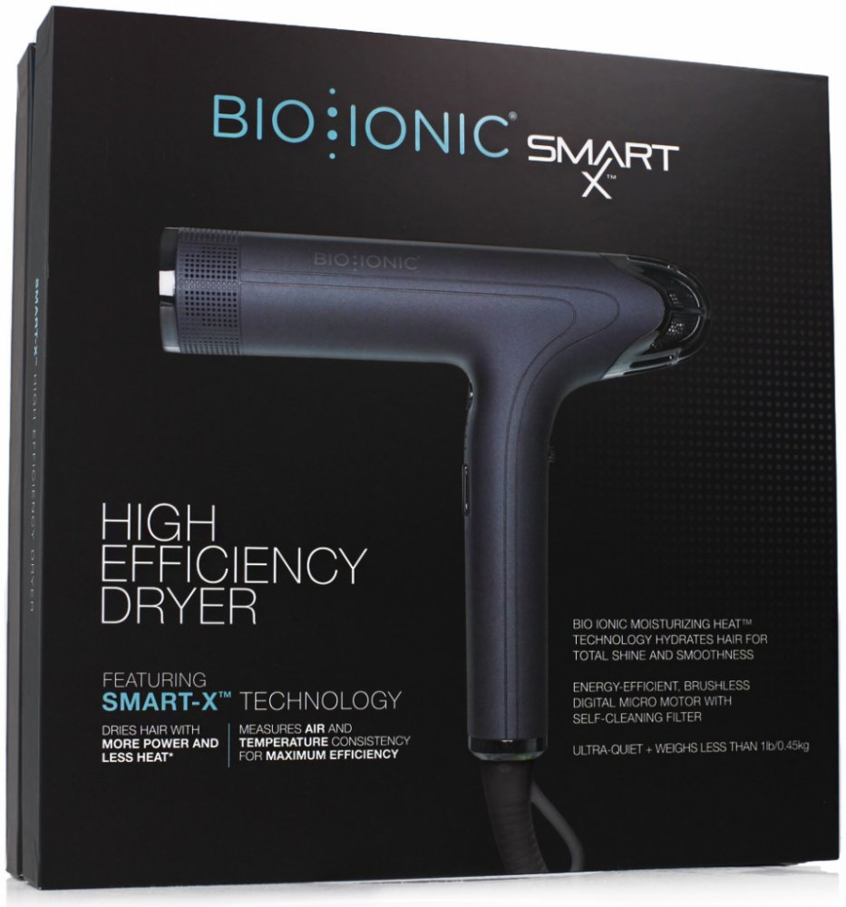 Rychlé, šetrné, profesionální a naprosto pokrokové, takové je vysoušení vlasů s novým fénem Bio Ionic SMART-X™ High Efficiency Dryer. Vlasy vysuší o 75 % rychleji* a využívá přitom většího tlaku vzduchu a menšího množství tepla, takže je celý proces pro vlasy šetrnější. O maximální účinnost a konzistenci vysoušení se stará průlomová technologie SMART-X™, která stokrát za sekundu vyrovnává teplotu a proud vzduchu.