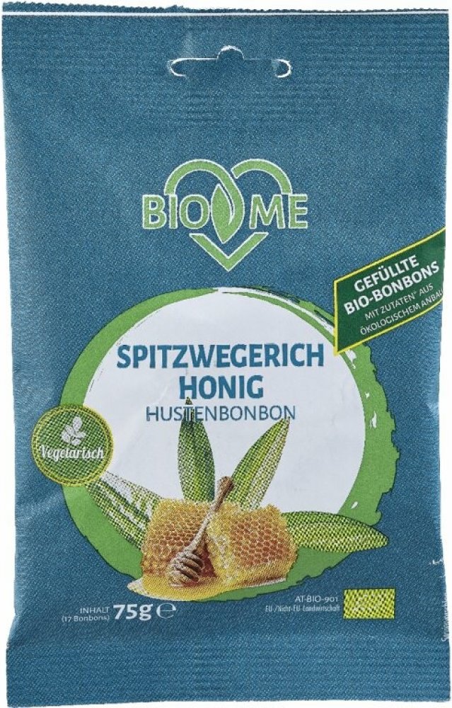 Složení: Cukr*, glukózový sirup*, med* (5 %), extrakt z jitrocele kopinatého* (1 %), eukalyptový olej*, přírodní mentol.