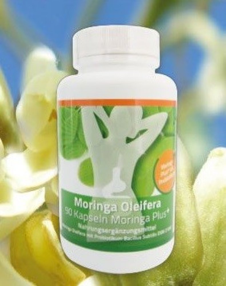 90 kapslí Moringy-PLUS / moringa oleifera prášek z listů včetně probiotika Bacillus subtilis DSM21097.