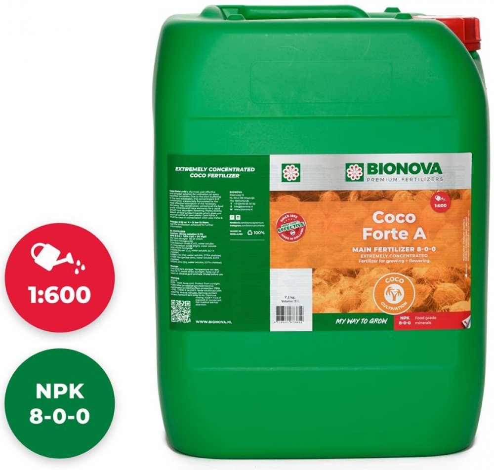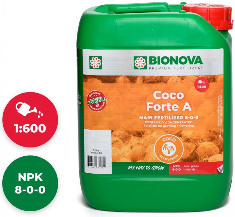 Základem pro Coco Forte je Nutri Forte. Všechny minerály mají kvalitu "potravinářského stupně" a stopové prvky obsažené v hnojivu jsou chelátovány tak, aby mohly být absorbovány v rámci většího rozsahu pH. Speciálně pro kokosový substrát byly ke hnojivu Coco Forte A+B přidány různé prvky, které zaručují optimální růst a květ při pěstování na kokosovém médiu, zejména pokud je použito opakovaně. Při opětovném použití je třeba zkontrolovat, zda je médium bez chorob a virů.