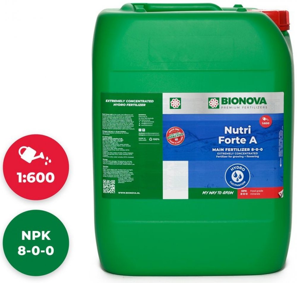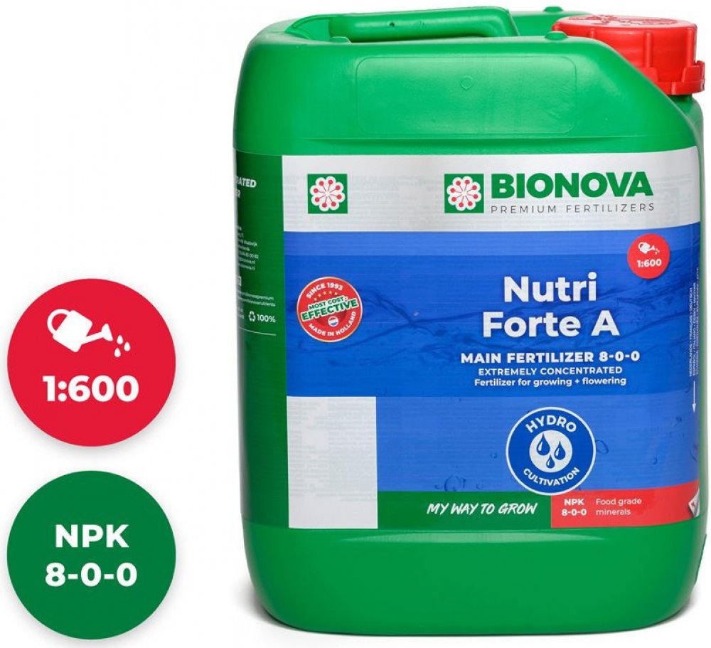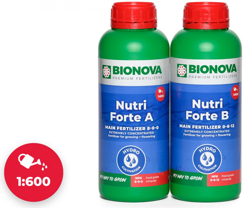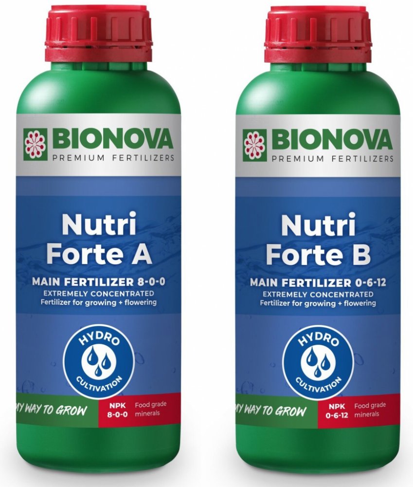 Nutri Forte A+B je použitelný od prvního týdne růstu až do týdne před sklizní. Proplachování je povinné. Bionova Nutri Forte A+B lze použít k zavlažování. Nutri Forte A+B lze použít ve spojení se všemi stimulátory, minerály, univerzálními hnojivy a substráty Bionova.