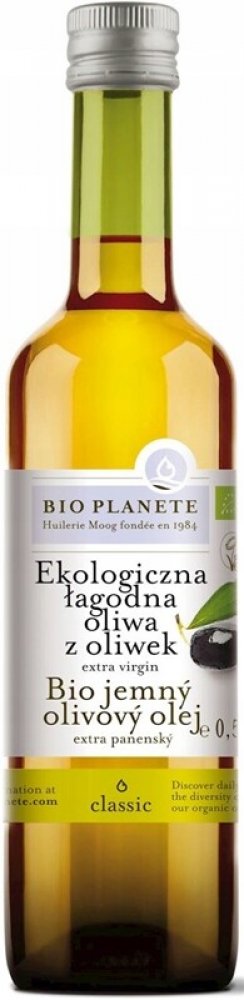 Bio extra panenský olivový olej je vyroben z oliv, které pocházejí ze stoletých olivových hájů. Plody stromů jsou ručně sbírány, pečlivě tříděny a za studena lisovány. Tímto způsobem vzniká unikátní olej s příjemnou lehkou olivovou chutí. BIO PLANETE se stala roku 1984 první evropskou organickou lisovnou oleje. Společnost oleje získává ze semen, ořechů a ovoce v biokvalitě se snahou zachovat jejich původní chuť. Firma si zakládá na vysoké kvalitě. Spolupracuje s osvědčenými dodavateli, testuje suroviny v místě původu i přímo v lisovně, nechává produkty během zpracování pomocí analýz několikrát ověřovat. Biopotraviny vždy prochází systémem kontrol a certifikace, který zajišťuje jejich kvalitu a umožňuje jim nést toto označení. Jejich biokvalitu docení především lidé se zájmem o ekologické zemědělství a udržitelný systém hospodaření.