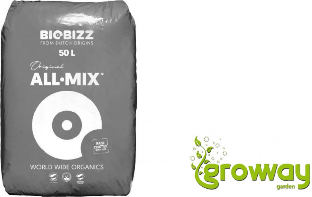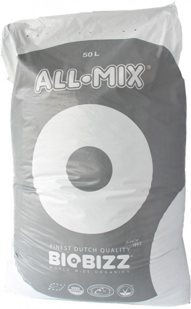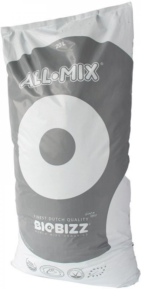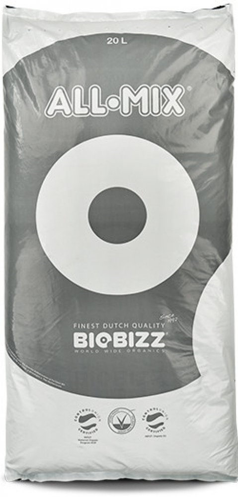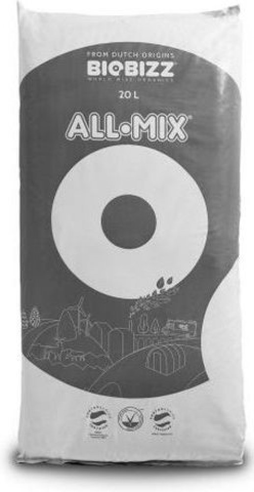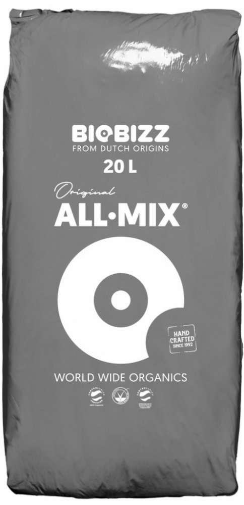 BioBizz All-mix je rašelinový substrát určený zejména pro kvalitní organické pěstování v květináčích. Tento substrát je více předhnojený, jeho EC hodnota je 2,4 a nabízí s plně funkční mikrobiální ekosystém. Je vhodný pro přesazování mladých i starších rostlin. Do All-mixu se nedoporučuje vysévat semena nebo přesazovat semenáčky, protože by je mohl vysoký obsah hnojiv spálit. Výhody: Předhnojený substrát vysoké kvality. Optimální hodnoty pH a EC. Vhodný pro BIO pěstování. Využití: Před vysazením substrát navlhčete a nechte 36 hodin v klidu. Tím se aktivují půdní mikroorganismy. Chraňte All-mix před nízkými teplotami. Obsah: 20 % rašeliníku 35 % zahradní rašeliny 10 % wormhumusu 30 % perlitu 5 % Pre-mixu Pokud máte zájem spíše o lehce předhnojený substrát, můžeme Vám vřele doporučit Light Mix od značky BioBizz.