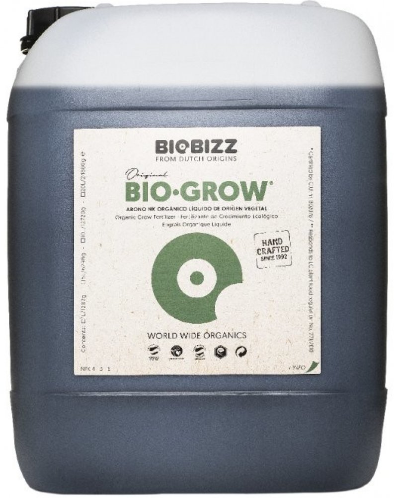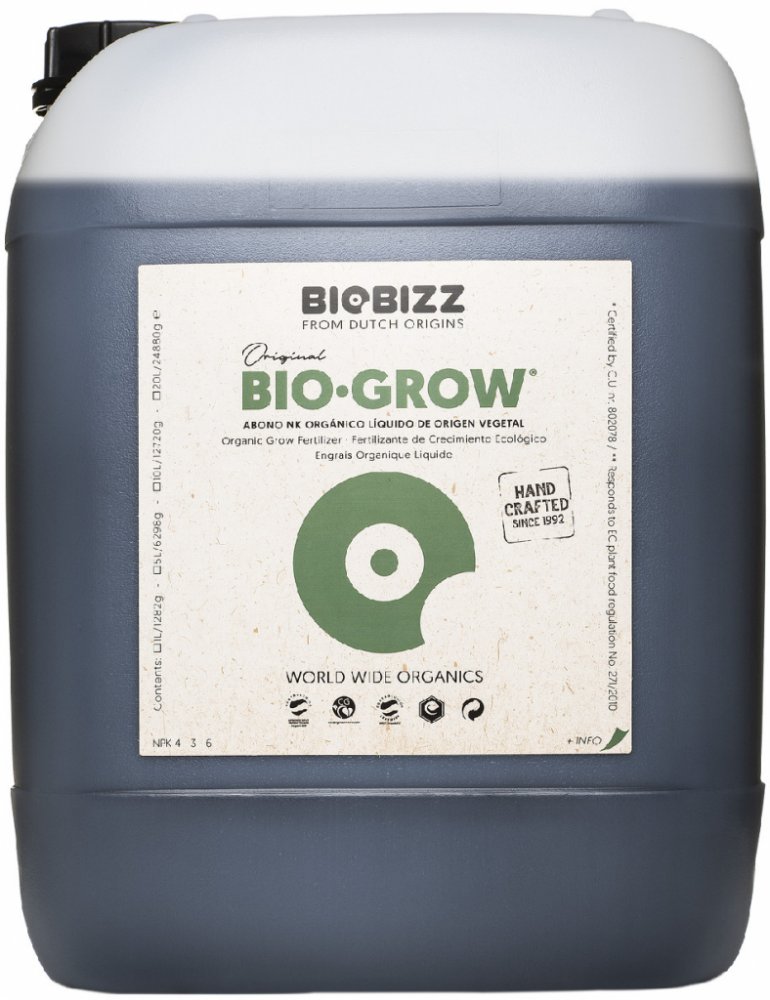 BioBizz Grow je základní biologická výživa pro rostliny v růstu a v květu se používá jako tonikum. Podporuje explozivní růst rostlin a je vhodné pro všechny typy půd a půdních mixů. Lze používat i s kapilární závlahou. BioBizz Grow je vhodný pro téměř všechny typy půdních směsí.