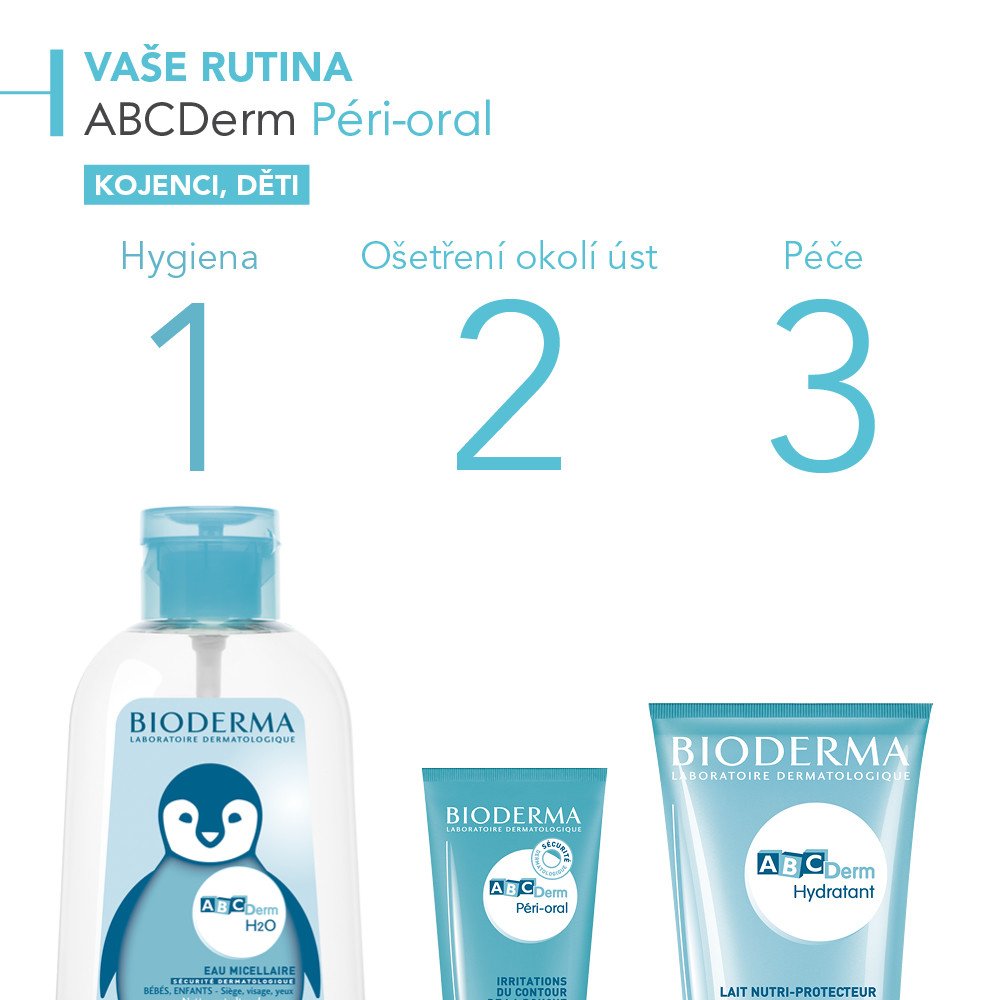 Přípravek Bioderma ABCDerm Péri-oral je bohatý na zvlhčující složky a složky obnovující kožní bariéru.