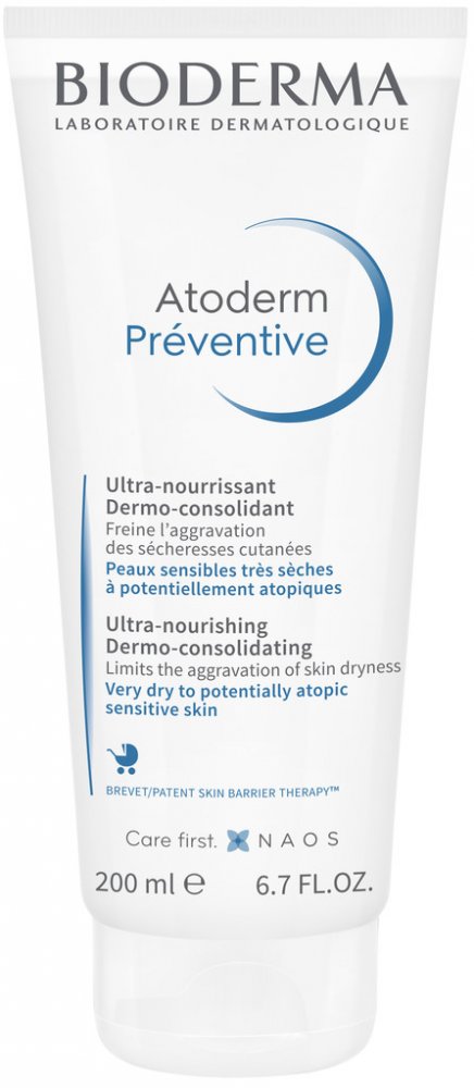 Výživný restrukturalizační krém na suchou pokožku dětí a pro pokožku s predispozicí k atopické dermatitidě. Krém omezuje zhoršení suchosti pokožky hned od narození. Trvale obnovuje kožní bariéru díky exkluzivnímu komplexu Lipigenium, který se skládá z esenciálních mastných kyselin (Omega 3 a 6) a biolipidů (ceramidy), které jsou přirozeně přítomné v kůži. U dětí se suchou pokožkou s jich však nevytváří dostatečné množství. Patent Skin Barrier Therapy kombinuje schopnost přirozeně obnovit hydrolipidický film na povrchu pokožky, podpořit tvorbu lipidů a proteinů, což vede ke zvýšení soudružnosti kožních buněk, a tedy k vytvoření zdravé kožní bariéry. Navíc zamezuje přemnožení baktérie Staphylococcus Aureus a pronikání alergenů, které zhoršují stav podrážděné pokožky. Krém má velmi jemnou, příjemně parfemovanou texturu. Je hypoalergenní. Snadno se roztírá a okamžitě se vstřebává. Výborná tolerance. Vlastnosti obnovuje integritu kožní bariéry podporuje syntézu lipidů a proteinů reguluje bakteriální rovnováhu určen také pro novorozence a výjimkou předčasně narozených dětí na tvář a tělo Použití Aplikujte 1–2krát denně na očištěnou pokožku vhodný přípravkem, např. z řady Atoderm. Pokud suchost přetrvává, poraďte se s lékařem.
