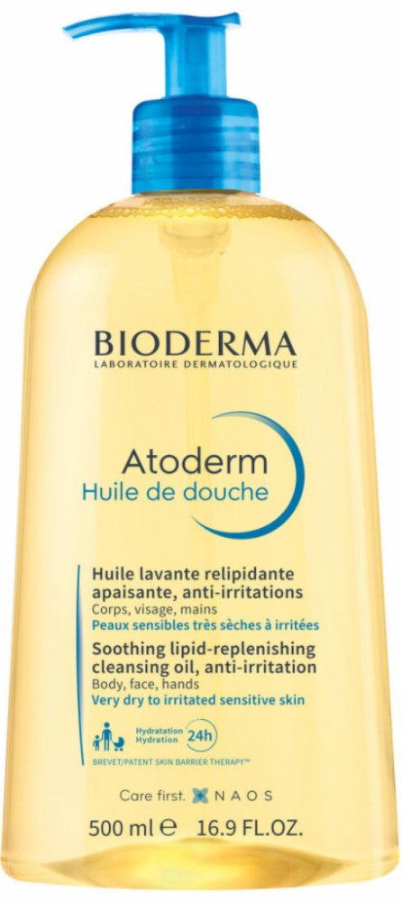 Krémová a nemastná textura Atoderm sprchového oleje zajišťuje jemné čištění velmi suché a podrážděné citlivé pokožky.
