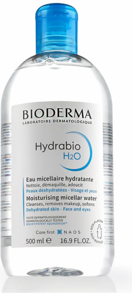 Bioderma Hydrabio H2O Moisturising Micellar Water 500 ml je jemná micelární voda s hydratačním účinkem, která šetrně odstraňuje make-up, nečistoty a přebytečný maz, zatímco respektuje přirozenou rovnováhu pokožky. Díky patentovanému komplexu Aquagenium™ stimuluje přirozenou schopnost pleti udržovat vodu, čímž pomáhá obnovovat její jas a komfort. Je vhodná i pro citlivou a dehydratovanou pleť. Vlastnosti Micelární voda s hydratačním účinkemObsahuje patentovaný komplex Aquagenium™Šetrně odstraňuje make-up z obličeje i očíHypoalergenní a dobře tolerovaná i citlivou pletíVelké balení 500 ml pro každodenní použitíKlíčové benefity Čistí pleť bez podráždění a vysušeníPodporuje dlouhodobou hydrataci pokožkyNavrací pleti jas, svěžest a komfortVhodná pro každodenní použití, i při citlivé a křehké pletiMultifunkční – odličuje, čistí a hydratuje v jednom krokuPoužití Naneste micelární vodu na vatový tampónJemně otírejte obličej, oči i rty, dokud tampón nezůstane čistýNení třeba oplachovat, ale lze pokračovat svou běžnou rutinou péčePoužívejte ráno a/nebo večer podle potřebyIdeální jako první krok v hydratační péči o pleť