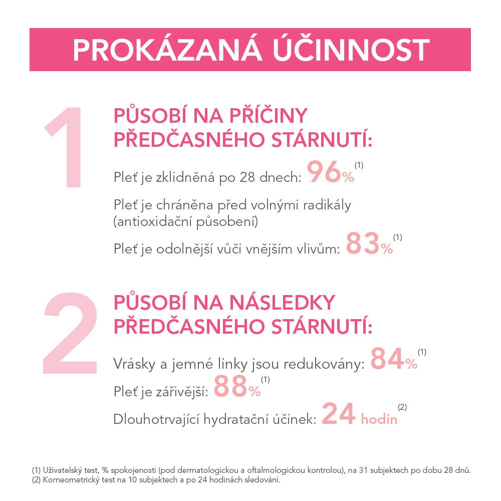 - Vyhlazuje a zpevňuje pleť, redukuje vrásky a jemné linky.