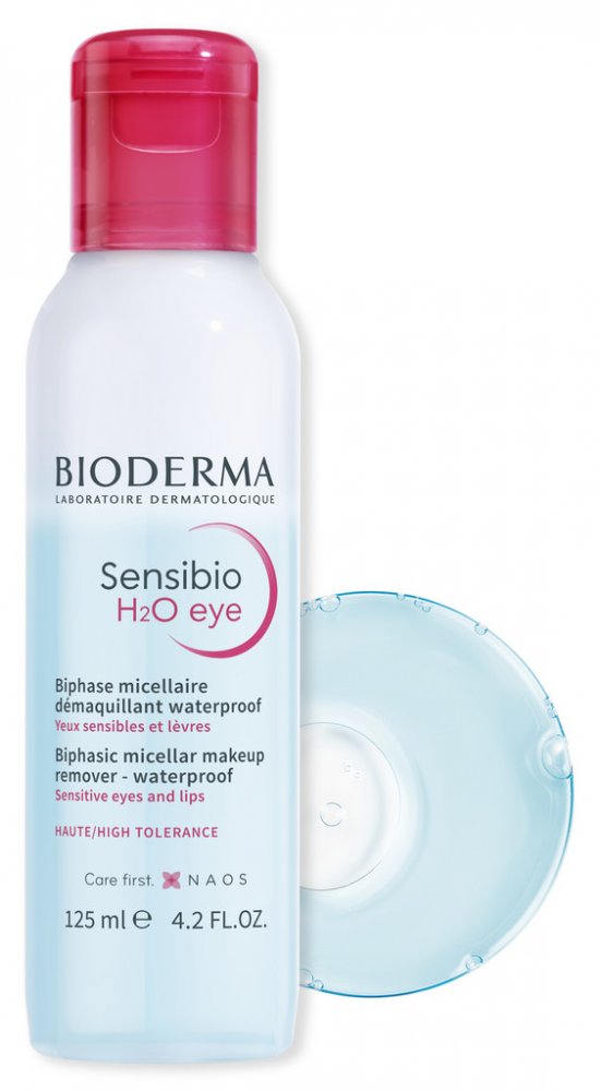 Dvoufázová micelární voda Sensibio H2O eye díky svému jedinečnému složení kombinuje vysoce účinné odlíčení a optimální snášenlivost. Zároveň poskytuje i té nejcitlivější pleti jedinečný dvojí přínos: hydrataci a zklidnění. Odstraňuje make-up a čistí oči a rty i od voděodolného make-upu a nečistot.