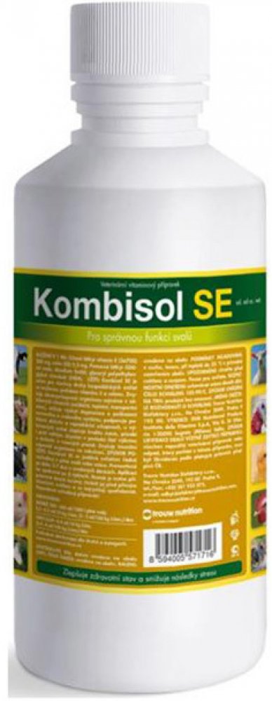 Komplex vitaminu E a selenu v tekuté formě. 250ml Vhodný pro králíky, morčata a jiné hlodavce. Doplňková krmná směs Kombisol SE je určena pro všechny druhy zvířat za účelem odstranění potíží způsobených nedostatkem vitaminu E a selenu. Je podáván především v zátěžových situacích (teplotní, transportní stres ). Přípravek zvyšuje imunitní odpověď organismu na vakcinaci. Kombisol SE rovněž podporuje pohlavní aktivitu a reprodukční schopnosti chovaných zvířat. Složení: (Obsah účinných látek v 1 ml) Vitamin E (alfa tokoferol) 200 mg, selen 200 mg - Způsob aplikace: Kombisol SE se podává zvířatům řádně rozředěný v pitné vodě nebo mléce. Preventivně po dobu 3 –7 dnů v uvedených dávkách. Aplikaci lze opakovat po 8 týdnech. Rozředěný roztok je nutno chránit před přímým slunečním světlem a co nejrychleji spotřebovat. Dávkování: Norek, nutrie, králík (5 kg ž. hm.) 1 ml/20 ks/1 den Pes (10 kg ž. hm.) 0,2 ml/1 ks/1 den Kočka (5 kg ž. hm.) 0,1 ml/1 ks/1 den - Doba použitelnosti: 18 měsíců od data výroby. Balení: 30 ml, 250 ml, 1 000 ml, 5 000 ml - plastové obaly.