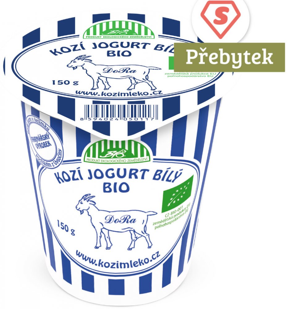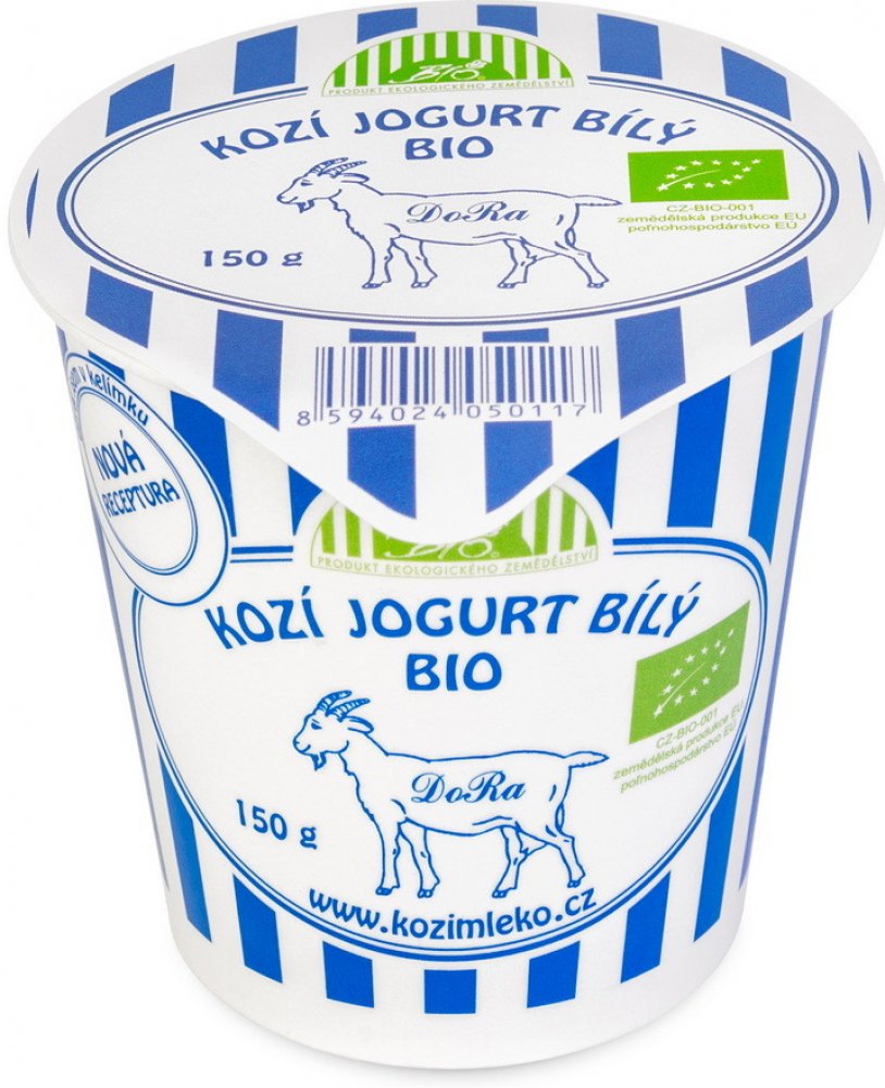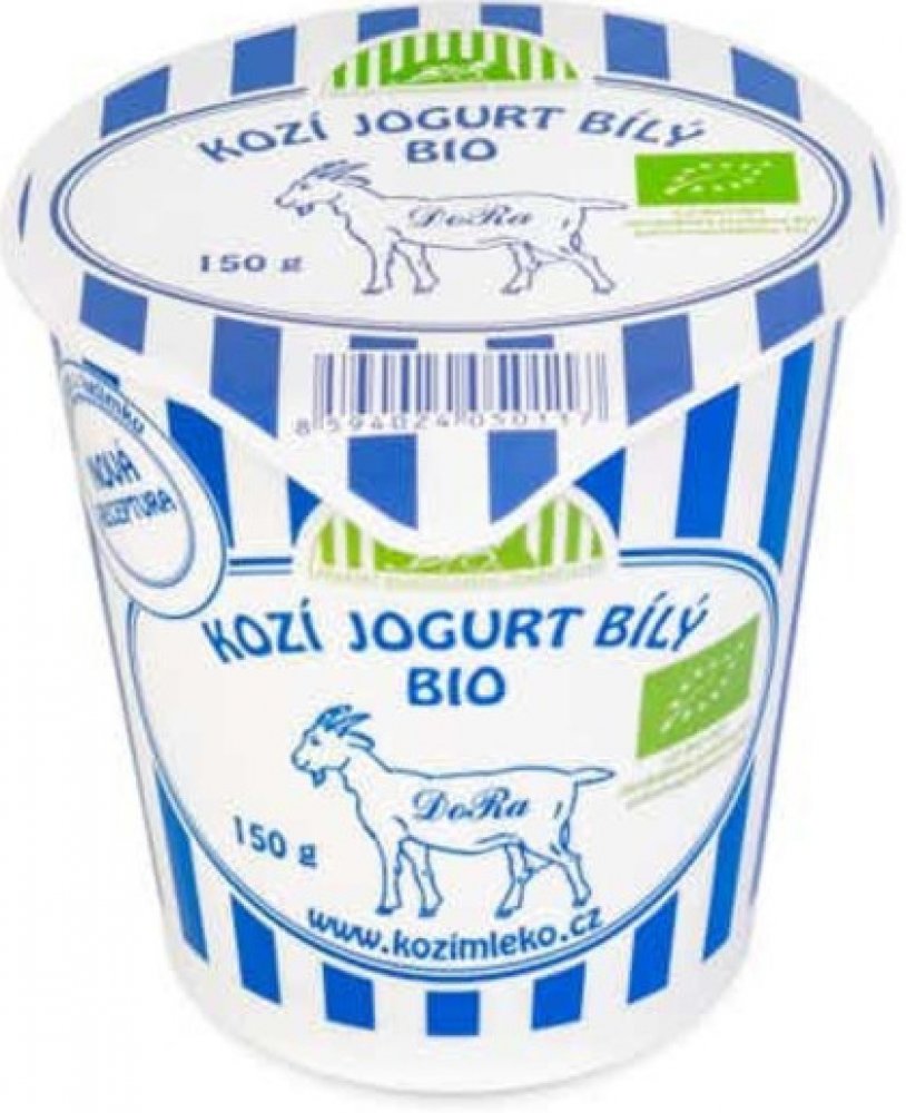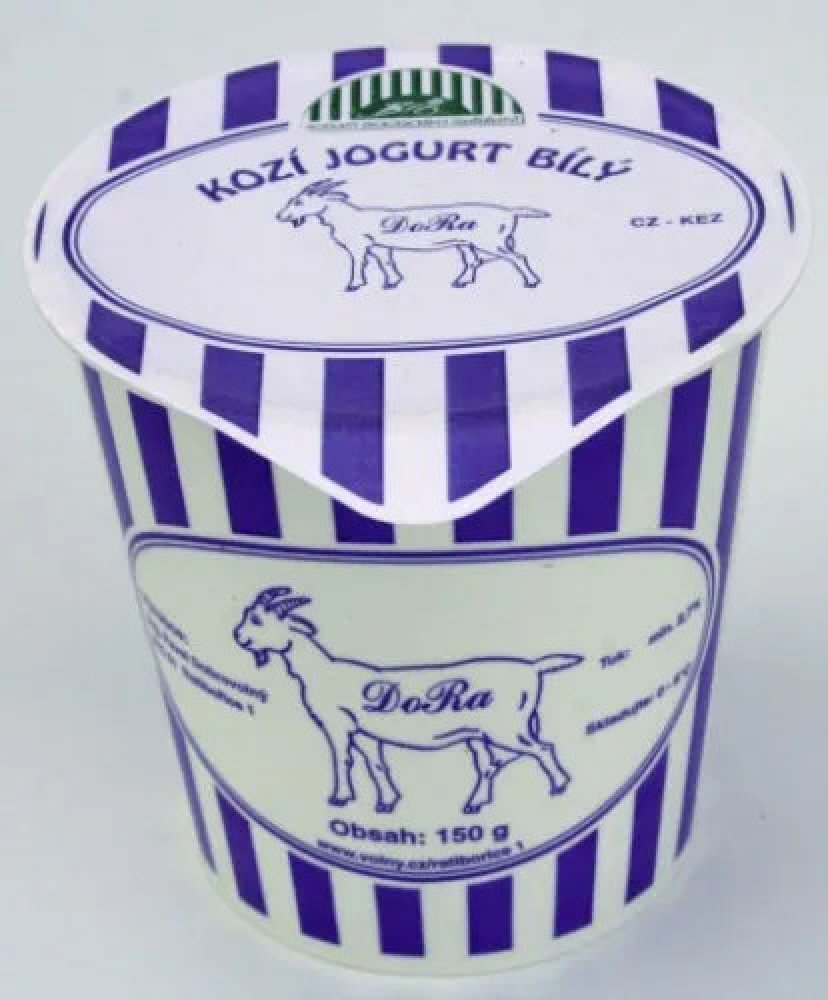 **Kozí jogurt bílý** značky DoRa pochází rodinné ekologické farmy na Vysočině.