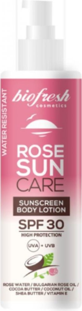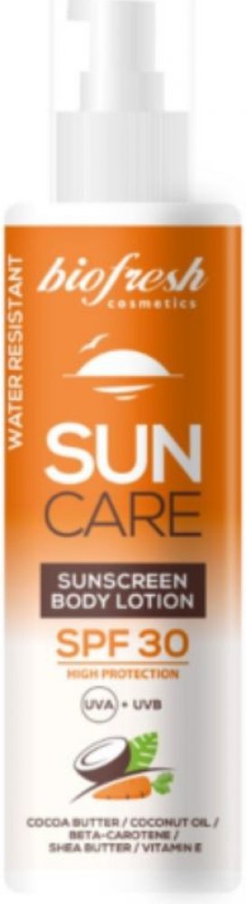 Opalovací tělové mléko SPF 30 s pumpičkou Biofresh Sun Care 200ml Letní opálení je krásnou vzpomínkou na léto, kterou si naše pokožka dlouho uchovává, aby nám připomněla ty nejpříjemnější chvíle pod sluncem. Zůstaňte klidní na pláži a chraňte svou pokožku před škodlivými slunečními paprsky s opalovacím tělovým mlékem Biofresh. Pokožka zůstává jemná, hydratovaná a hladká. Tělové mléko na opalování ...