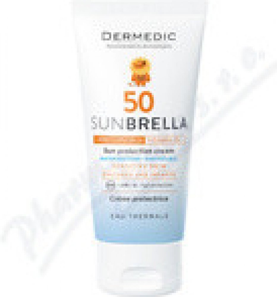 Minerální ochranný krém na obličej SPF 50 Dermedic Sunbrella Baby chrání citlivou dětskou pleť před škodlivým UVA a UVB zářením.