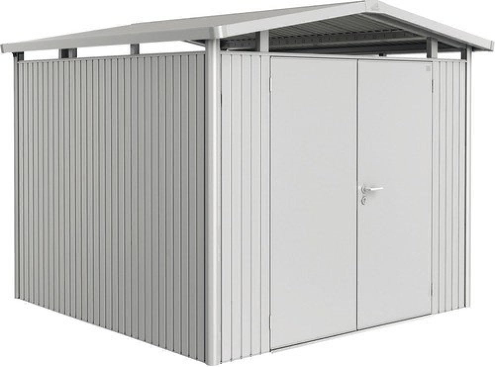 Plechový zahradní domek na nářadí Biohort Panorama spojuje kvalitu a eleganci. Domek na nářadí je vyroben ze žárově pozinkovaného, ocelového plechu s vypalovaným polyamidovým lakem se šrouby a závěsy z nerezové oceli. Vysoce kvalitní materiály zaručují bezúdržbovost a dlouhou životnost. Kovové zahradní domky na nářadí Biohort Panorama jsou k dispozici v široké škále barev a velikostí. Zahradní domky Panorama jsou opatřeny buď standardními dveřmi o rozměru 76 x 182 cm (panty vpravo) nebo dvoukřídlími dveřmi 155 x 182 cm. Standardní vybavení: Ke standardnímu vybavení domků na nářadí Biohort Panorama patří 2 police o rozměru 24,5 x 74 cm a 2 regálové stojny vyrobené z ocelového žárově pozinkovaného plechu s nosností max. 15 kg na polici, 4 ks držáků (např. na rýče, lopaty aj.) a 2 ks držáků na menší nářadí na vnitřní stranu dveří (možno připevnit až 5 ks). Vlastnosti: - 3 cestný uzamykací mechanismus s kompletní klikou z nerezové oceli (DIN prav) - Pohodlné otevírání a zavírání dveří s plynovou pružinou - 2 x okapový žlab s integrovaným lapačem listí s připojením pro hadici 5/4" - Stabilní střešní konstrukce se sněhovým zatížením do 150 kg/m2 - Odolnosti i proti bouřkám a silnému větru o síle 12 podle Beaufortovi stupnice síly větru - Dlouhá životnost - Včetně rozsáhlého standardního vybavení Barevné varianty: - Stříbrná metalická - Křemenově šedá metalická - Tmavě šedá metalická Velikostní varianty: P1: 273 x 158 cm P2: 273 x 198 cm P3: 273 x 238 cm P4: 273 x 278 cm P5: 273 x 318 cm Vylepšete si domek ještě trochu více a vyberte si ze široké škály příslušenství!