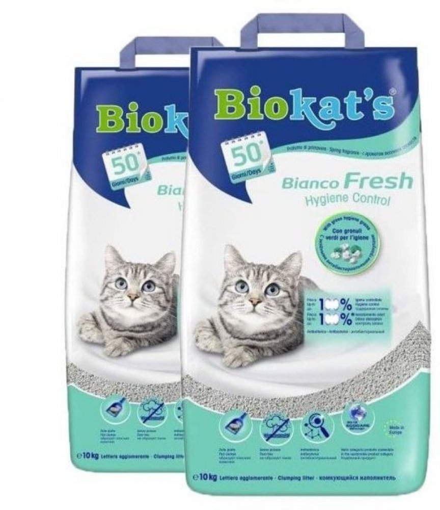 Biokat Bianco Fresh je stelivo pro kočky pro hygienickou a voňavou kočičí toaletu. Kočkolit je vyroben z přírodního bílého jílu a obsahuje vysoký podíl montmorillonitu, díky kterému je kočkolit obzvláště savý. Zelená hygienická zrnka poskytují příjemnou, svěží jarní vůni a díky složení AromaProtect dlouhodobě zabraňují nepříjemnému zápachu stolice a moči. Hrubozrnné bezprašné stelivo velmi rychle vytváří ploché hrudky a optimálně absorbuje tekutinu, takže čištění je rychlé a snadné. Bianco Fresh zajišťuje pohodu a čistotu pro lidi i zvířata. Biokat's Bianco Fresh: Vysoce kvalitní stelivo pro kočky Hrudkující stelivo s hrubou zrnitostí: zajišťuje obrovskou absorpční schopnost s mimořádně velkými póry a rychleji váže pachy Přírodní bílý jíl: díky vysokému podílu montmorillonitu je kočkolit obzvláště savý Zelená hygienická zrna: antibakteriální účinek Rychlá tvorba hrudek: tvoří ploché hrudky, snadné čištění Složení AromaProtect: zabraňuje nepříjemnému zápachu stolice a moči Bezprašné Příjemná vůně: jarní svěžest pro Váš domov Úsporné: vydrží až 50 dní