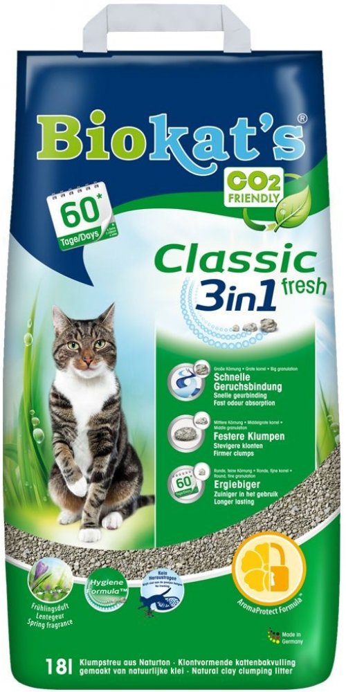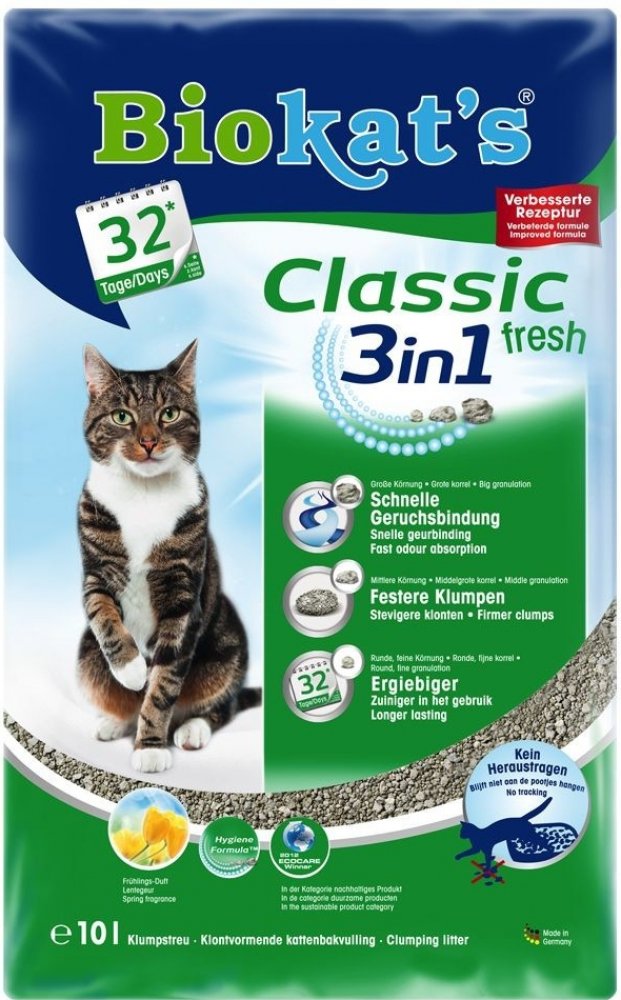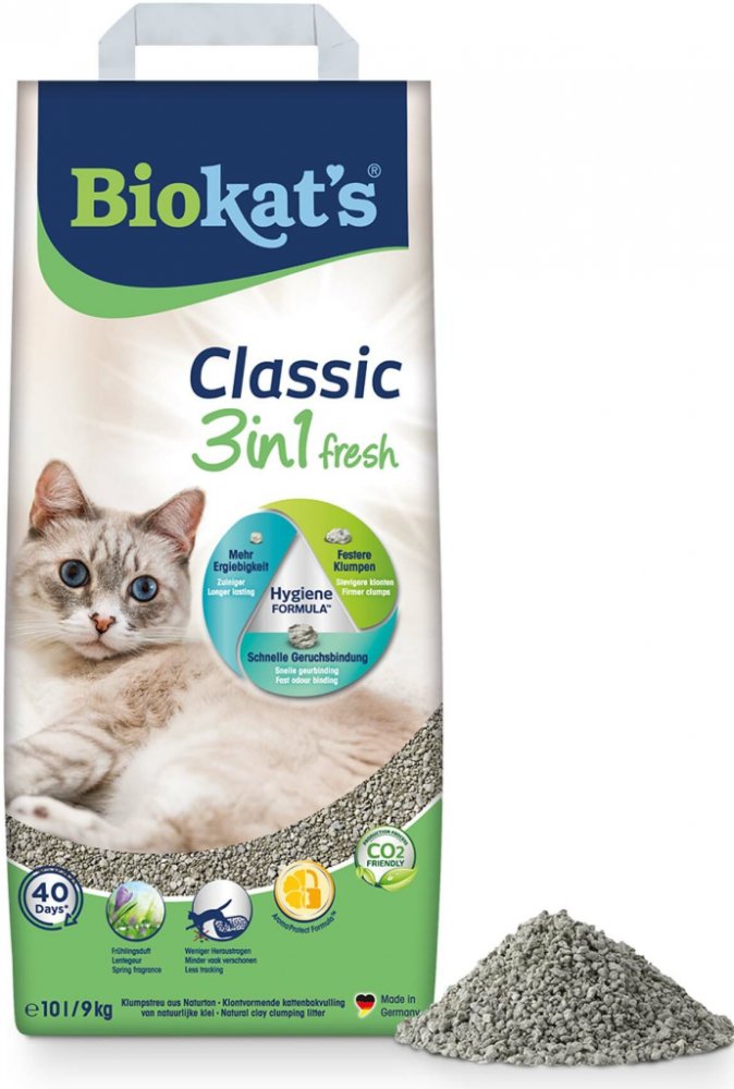 Stelivo pro kočky, které obsahuje tři různé velikosti krystalků. Velké krystaly mají extra velké póry a nasávají tak dobře vlhkost a zápach, střední krystaly tvoří velmi pevné hrudky, a drobné krystalky vyplňují prostor mezi nimi. Tato jedinečná kombinace lépe váže zápach a vlhkost a vytváří lepší hrudky. Díky speciálním krystalkům se stelivo nezachytává na kočičí packy a tím pádem zůstává pouze v toaletě. Stelivo je bez vůně. Vydrží čisté až 32 dní. Stelivo je 100% přírodní, pochází z ekologického výkopu v Německu.