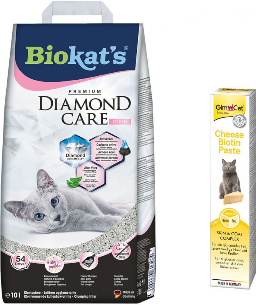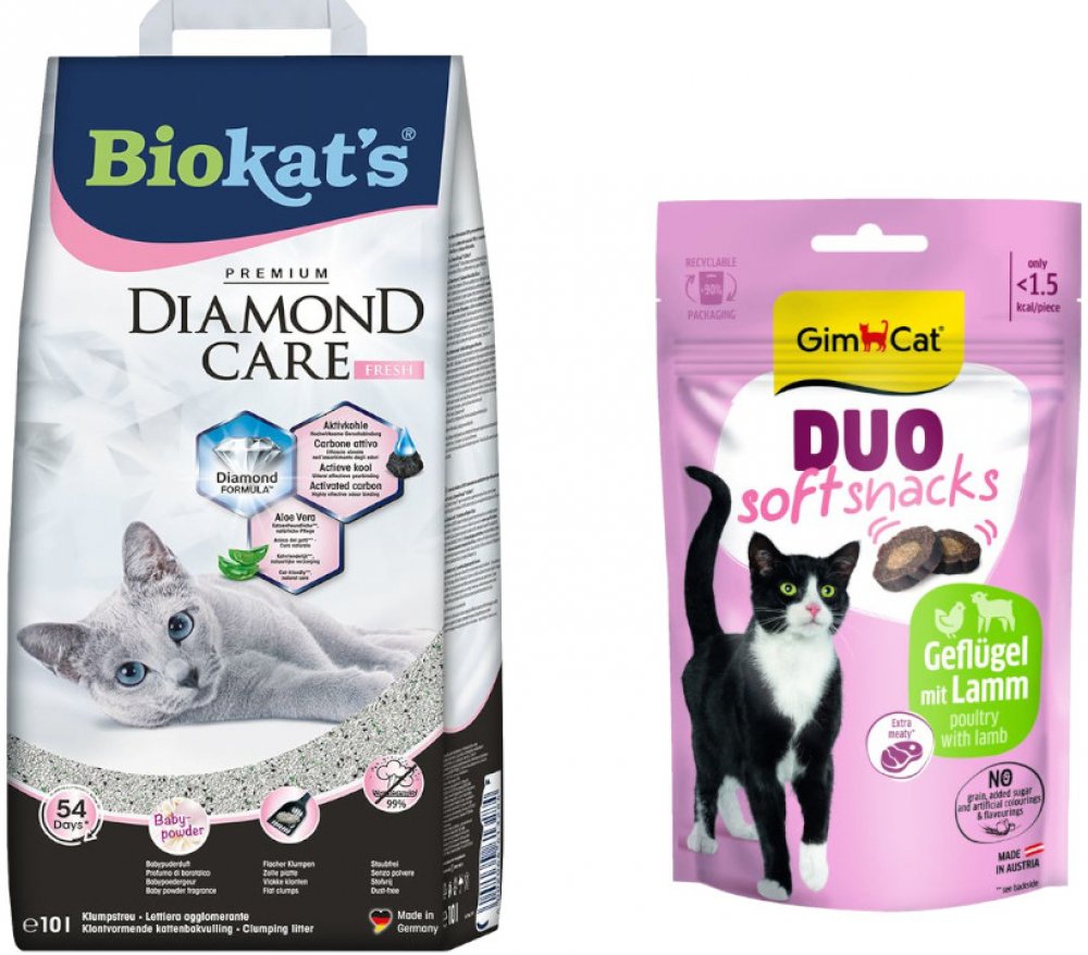 Ať již hledáte klasický kočkolit z přírodního jílu, nebo stelivo obohacené o speciální vonné látky: mezi osvědčenými kočkolity od Biokat´s najdete to pravé pro vašeho domácího tygra! Snacky Gimcat Crunchy Insekt snack pro kočky jsou připravovány z chutného hmyzu, který slouží jako cenný zdroj bílkovin. Dekorativní pamlsky ve tvaru srdce jsou zušlechtěny dýní. Pamlsky neobsahují žádná zrna a jsou proto ideální pro chlupaté kamarády s intolerancí na obilniny. GimCat Crunchy Snacks jsou také bez přidaného cukru a umělých příchutí. Využijte naší skvělé nabídky! Pouze po omezenou dobu: nyní při koupi vybraných kočkolitů Biokat´s Diamond Care získáte k tomu snack GimCat Crunchy Insekt snack zdarma! Neopomeňte prosím, že se uvedená nabídka vztahuje pouze na produkt č. 2226492.