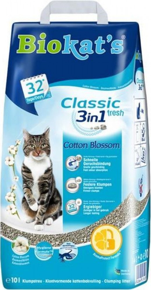 Nechte se okouzlit harmonickou kombinací vůně Cotton Blossom a decentní příměsi jasmínu. Cotton Blossom přináší do Vašeho domova každý den vzdušnou a lehkou vůní čerstvě vypraného prádla. Biokat´s s vůní Cotton Blossom se vyznačuje recepturou Aroma Protect Formula. Ta spolehlivě pohlcuje nepříjemné pachy a uvolňuje příjemnou vůni květů bavlny. Receptura Biokat´s AromaProtect Formula vyvinutá našimi odborníky na kočičí hygienu je zárukou dlouhodobě účinného pohlcování pachů! Čím vyniká Hygiene Formula Biokat´s 3v1? Biokat´s se skládá ze zrn tří různých velikostí: Velká zrna mají póry s mimořádně velkou plochou. Podobně jako houba do sebe tyto póry nasají tekutinu a pachy. Hrst našich velkých zrn vytvoří povrch celého fotbalového hřiště! Středně velká zrna tvoří mimořádně silné hrudky. Jakmile se totiž tato zrna dostanou do styku s tekutinou, pevně se stmelí a propůjčí vzniklé hrudce pořebnou stabilitu. Malá zrna zvyšují účinek. Rozptýlí se do celého steliva a podporují optimální působení středně velkých a velkých zrn. Stelivo odklízejte jako domácí odpad nebo do nádoby na biologický odpad (dbejte prosím na místní předpisy). Nesplachujte do WC! Balení uchovávejte mimo dosah dětí a zvířat - hrozí nebezpečí udušení! Skladujte v suchu.