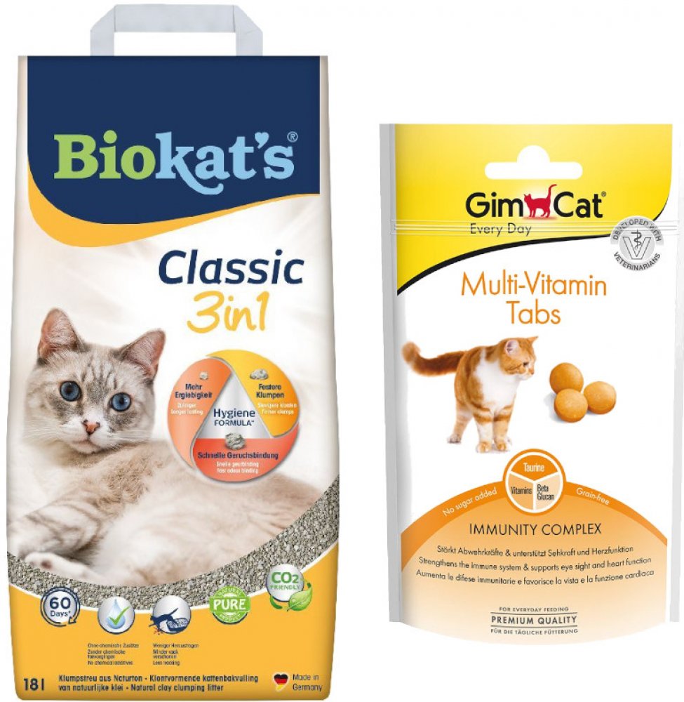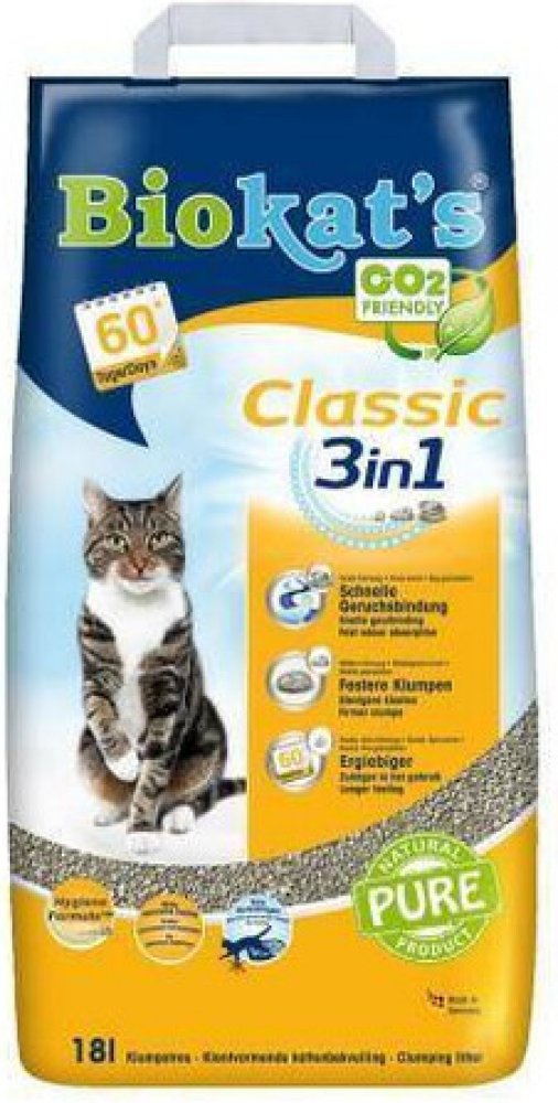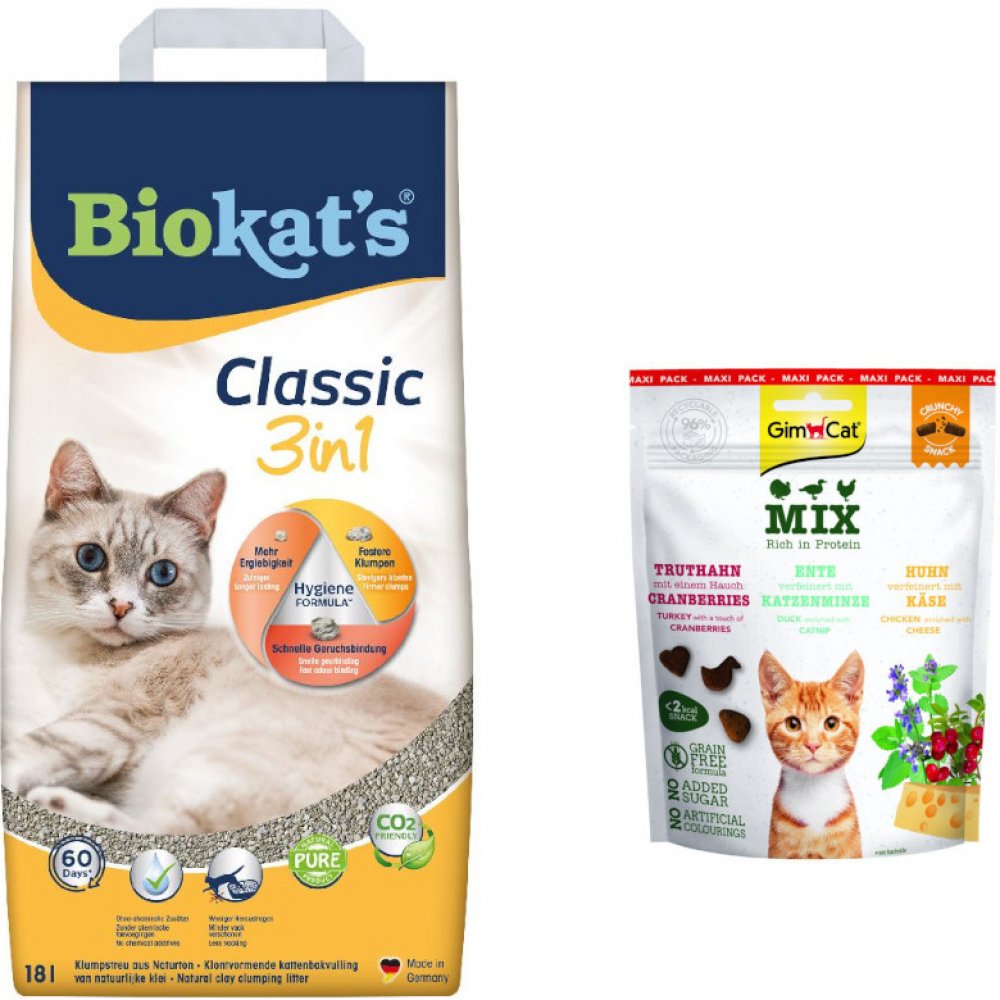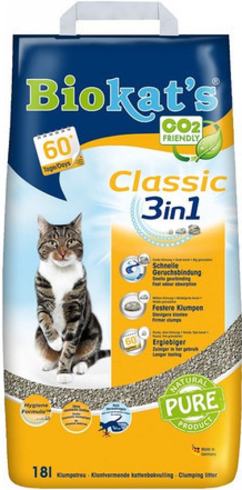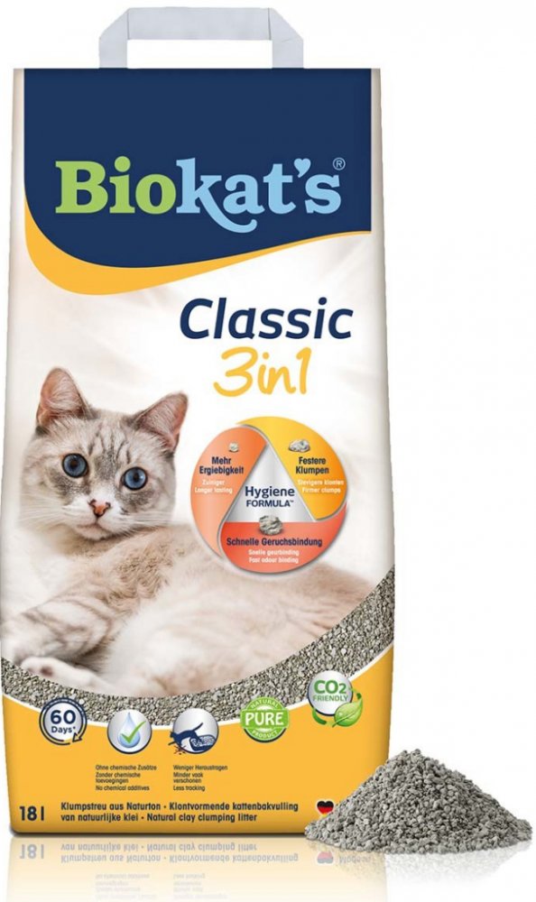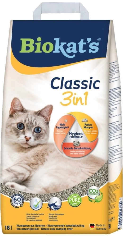 Tato podestýlka pro kočky se vyznačuje svou AromaProtect formulí. Spolehlivě pohlcuje nepříjemné pachy a aktivuje vůni. Kočkolit Biokats Classic Fresh kombinuje stelivo s velkými, středně velkými a malými zrnky. Velká zrnka obsahují velké póry, které absorbují vlhkost stejně jako houba. Středně velká zrnka tvoří velmi pevné hrudky, neboť mají optimální velikost a vyplňují mezery mezi velkými a malými zrnky. Malá zrnka prodlužují trvanlivost steliva, neboť se promíchají s velkými a středně velkými zrnky a zvyšují tak jejich účinnost. Biokat´s Classic Fresh 3 v 1 disponuje i další předností: díky speciální granulaci se nelepí na tlapky a neznečišťuje tak okolí toalety. Ušetříte tak čas i námahu potřebné k úklidu. Kočkolit se skládá ze 100% přírodního jílu pocházejícího z kontrolované ekologické těžby v Německu. Přednosti steliva Biokat´s Classic Fresh 3 v 1: Hrudkující kočkolit se třemi různými velikostmi zrnek: velká zrnka absorbují díky velkým pórům vlhkost i pachy středně velká zrnka mají ideální velikost a zaplňují tak mezery mezi velkými a malými zrnky a tvoří pevné hrudky malá zrnka prodlužují trvanlivost, neboť se ideálně rozmístí mezi velká a středně velká zrnka AromaProtect formule: zapouzdřuje nepříjemné pachy a aktivuje vůni Vysoký komfort a hygiena: nedochází k vynášení steliva z toalety, protože se zrnka nelepí na tlapky Vydrží až 32 dní Příjemná vůně: permanentní pocit svěžesti díky příjemné jarní vůni Vyrobeno v Německu: garance německé výroby Přednosti steliva Biokat´s Classic 3v1: Kočkolit se třemi různými velikostmi zrnek: velká zrnka absorbují díky velkým pórům vlhkost i pachy středně velká zrnka mají ideální velikost a zaplňují tak mezery mezi velkými a malými zrnky a tvoří pevné hrudky malá zrnka prodlužují trvanlivost, neboť se ideálně rozmístí mezi velká a středně velká zrnka Vysoký komfort a hygiena: nedochází k vynášení steliva z toalety, protože se zrnka nelepí na tlapky Vydrží až 32 dní Bez vůně: kočičí toaleta je svěží a hygienicky čistá bez vlastní vůně Vyrobeno v Německu: garance německé výroby GimCat Crunchy Snacks: Lahodné pamlsky pro kočky Křupavý požitek: křupavá konzistence, velmi chutné a křupavé S drůbežím: vynikající a vysoce kvalitní zdroj bílkovin Dekorativní tvar: křupavá srdíčka, lze vyjmout jednotlivě, snadné dávkování Bez obilovin: vhodné pro kočky s odpovídajícími alergiemi a intolerancemi Bez přidaného cukru Rostlinné doplňky pro jedinečnou chuť: v závislosti na variantě vylepšené šantou kočičí, brusinkami nebo rozmarýnem. Bez umělých barviv a aromat Využijte naší skvělé nabídky! Pouze po omezenou dobu: nyní při koupi Biokat´s Classic / Classic Fresh podestýlky získáte k tomu snack GimCat Crunchy snack krůtí, kachní, kuřecí zdarma. Neopomeňte prosím, že se uvedená nabídka vztahuje pouze na produkt č. 2207062.