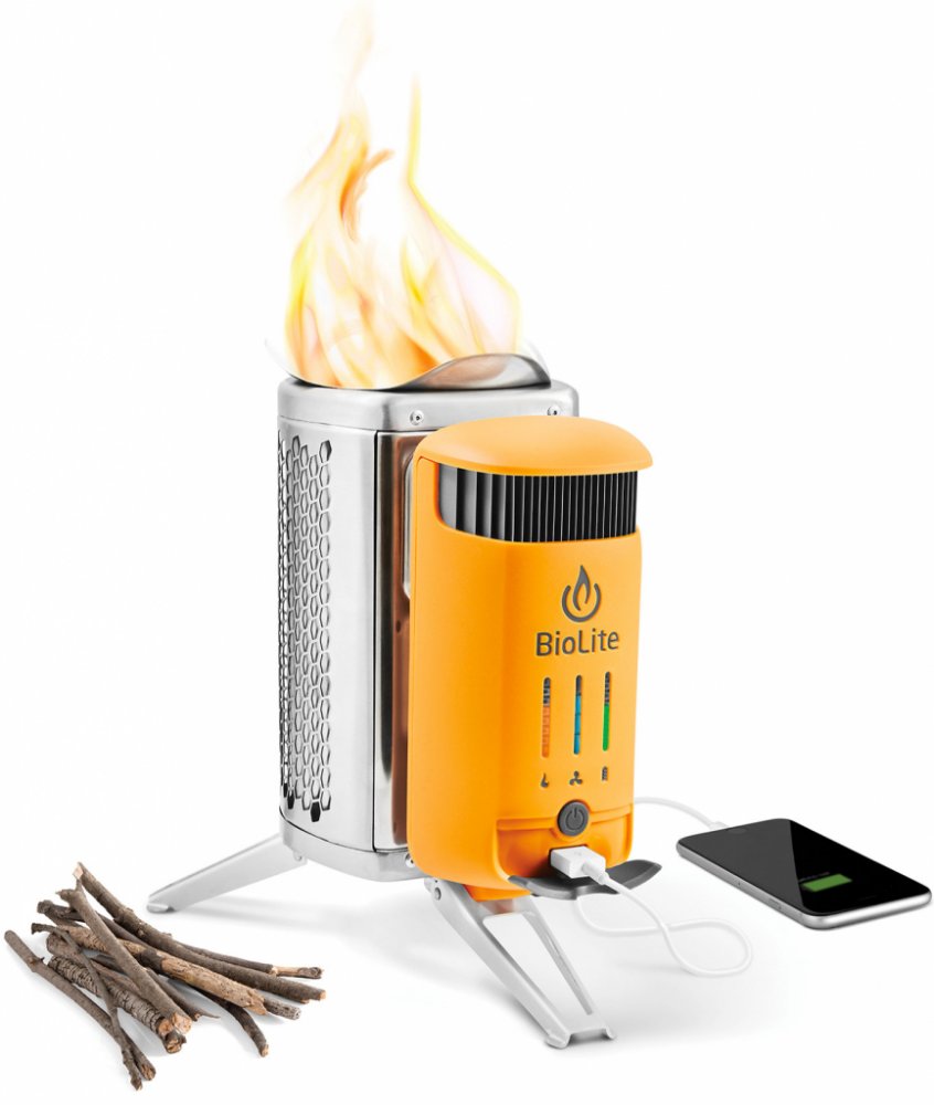 Turistický vařič BioLite CampStove 2+ mění oheň na elektřinu. Tento oceňovaný model využívá patentovanou technologii spalování, která umožňuje nejen vařit jídlo, ale také nabíjet zařízení - a to současně! Jedná se o dokonalé řešení pro terénní podmínky. Tento vařič dokáže uvařit litr vody za přibližně 4,5 minuty a navíc nabije váš smartphone. To je možné díky vestavěné baterii s kapacitou 3200 mAh...
