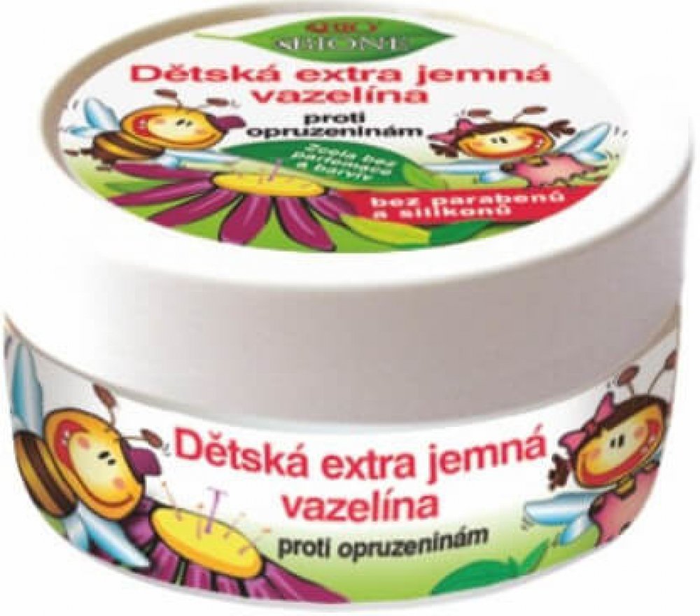 BIO – rostlinná, přírodní vazelína se zvláčňujícím mandlovým olejem, s cenným bambuckým máslem – karité, s ochranným antioxidačním vitamínem E.