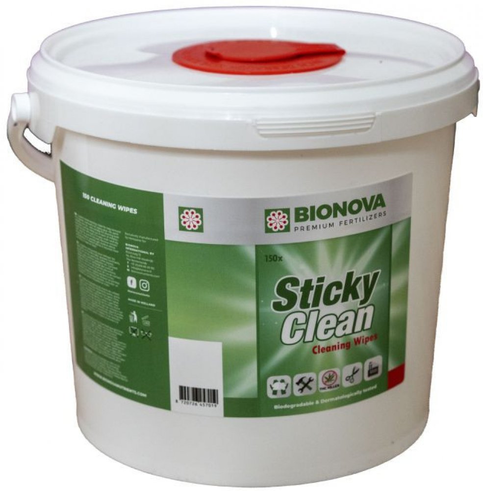 Bionova Sticky Clean jsou čisticím roztokem navlhčené ubrousky určené k čistění nástrojů a pokožky od rostlinných zbytků. Sticky Clean je speciálně vyvinutý k odstranění pryskyřice, laků, barev, lepidel, tmelů, mastnoty, oleje, maziva a jiných nečistot. Balení obsahuje 150 ubrousků.