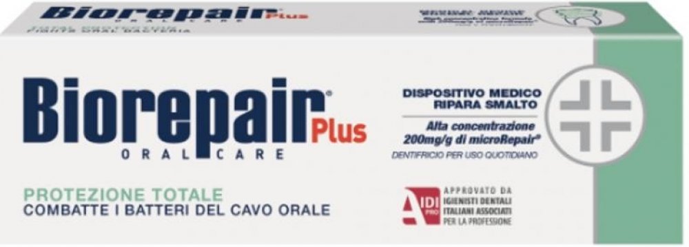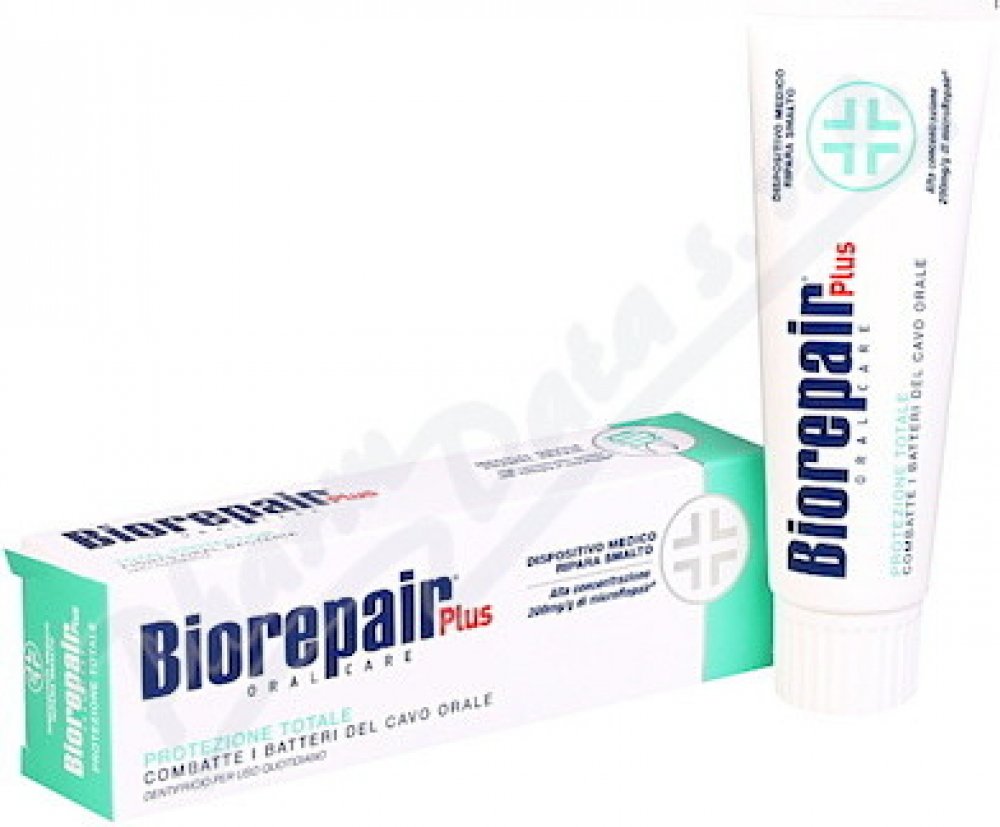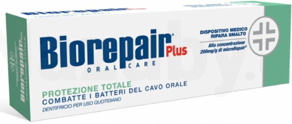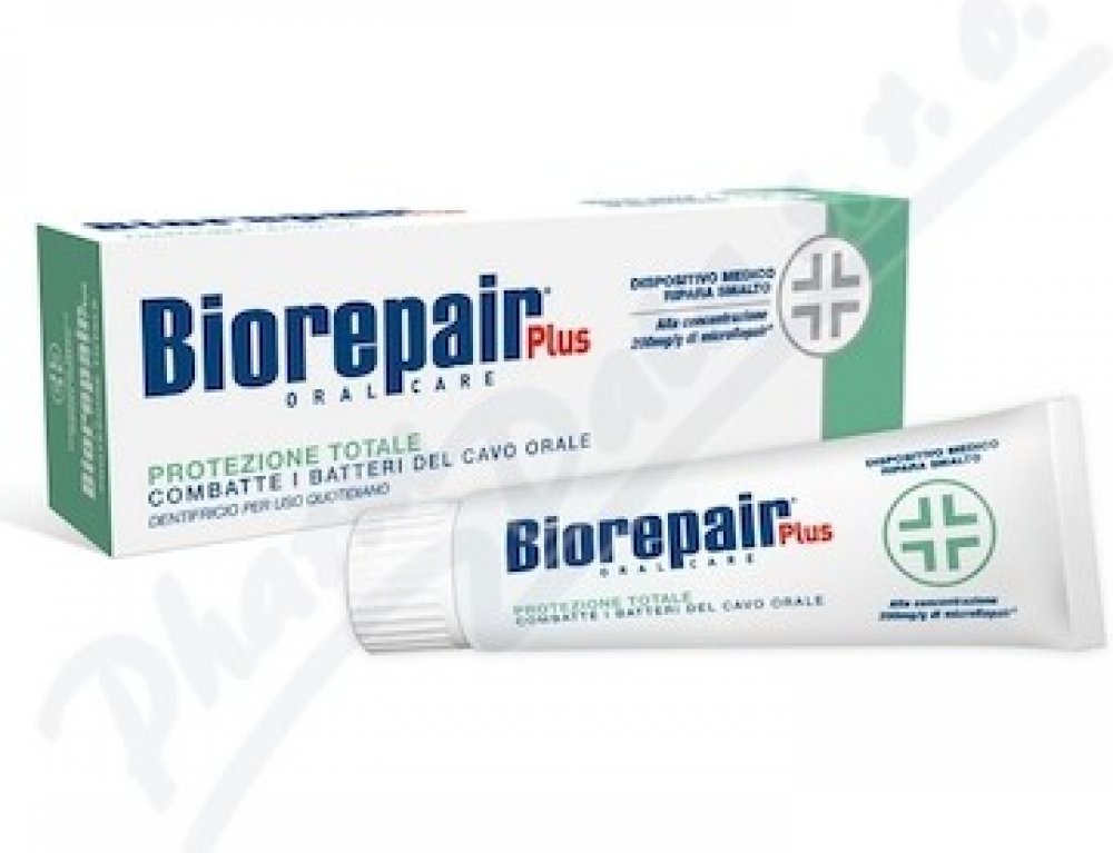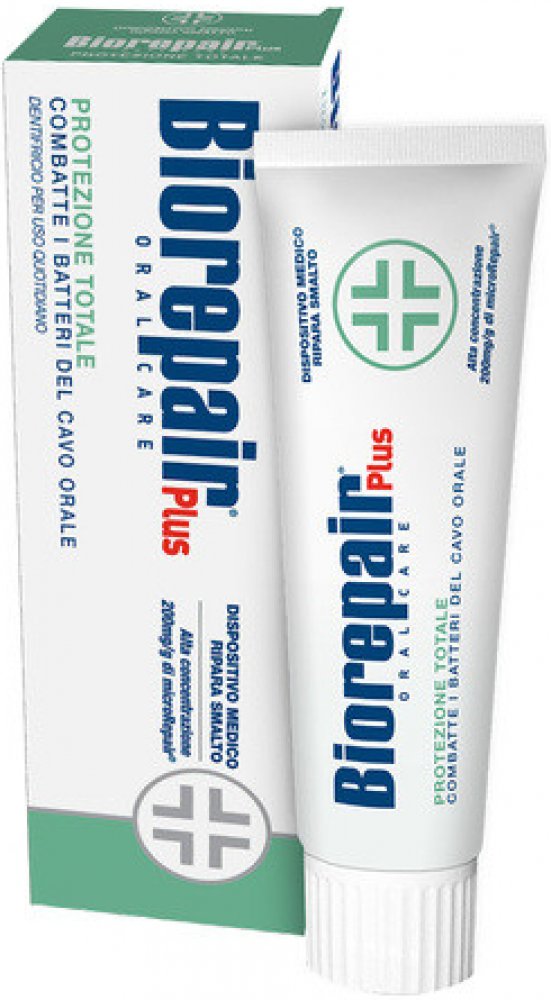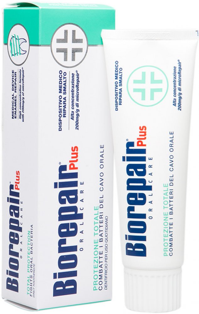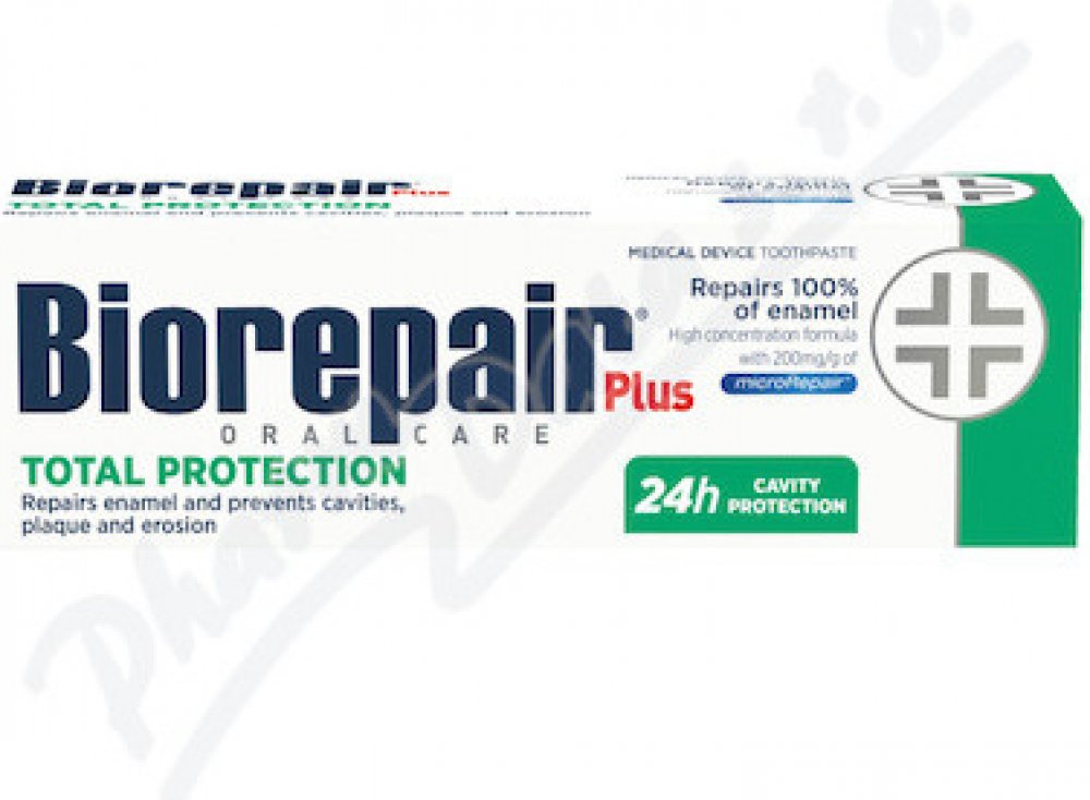 Zubní pasta BioRepair Plus Total Protection neobsahuje fluoridy, a přesto chrání zuby před zubním kazem a je vhodná pro každodenní používání. Komplexní ochranu zajišťuje patentovaná formule MircoRepair, která remineralizuje zubní sklovinu a působí antibakteriálně a preventivně proti vzniku zubního plaku, zubního kazu a kamene.