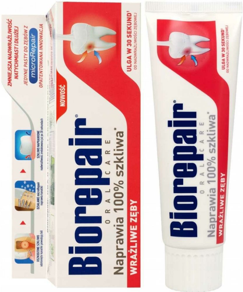 - MicroRepair® (biomimetický hydroxyapatit) – obnovuje sklovinu a uzavírá dentinové kanálky, čímž snižuje přecitlivělost