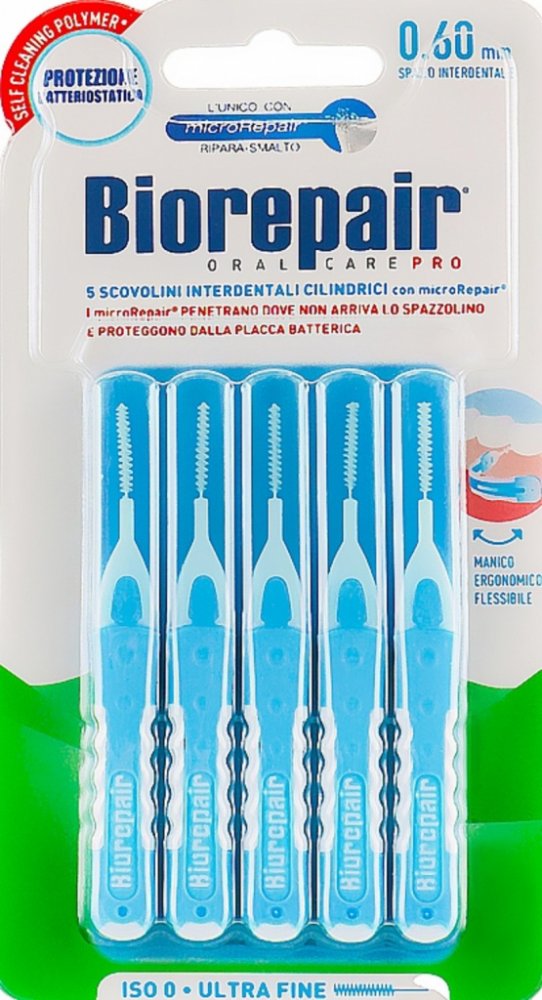 Mezizubní kartáček poskytuje ochranu před usazením zubního plaku, který způsobuje zubní kaz a zánět dásně. Obsahuje antibakteriální složku a microRepair, jejíž složení je velmi podobné zubní sklovině. Dostane se i do míst, kam už běžný zubní kartáček nedosáhne.Self Cleaning Polymer je speciální látka, díky které jsou všechny doplňky a zubní kartáčky značky Biorepair odolné proti bakteriím. Tato vl...