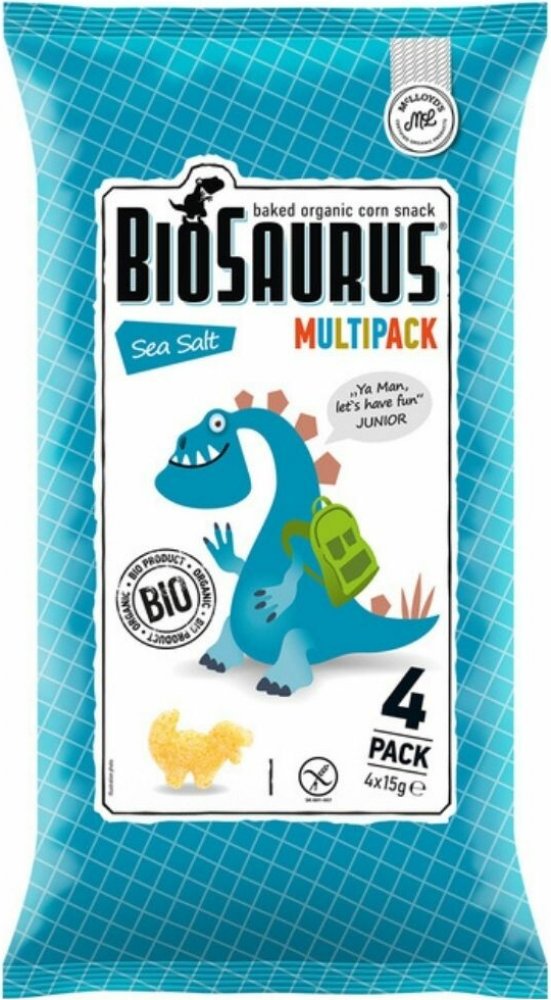 Kukuřičné křupky Dinosauři s mořskou solí bez obsahu lepku BIO 4x15 g BioSaurus