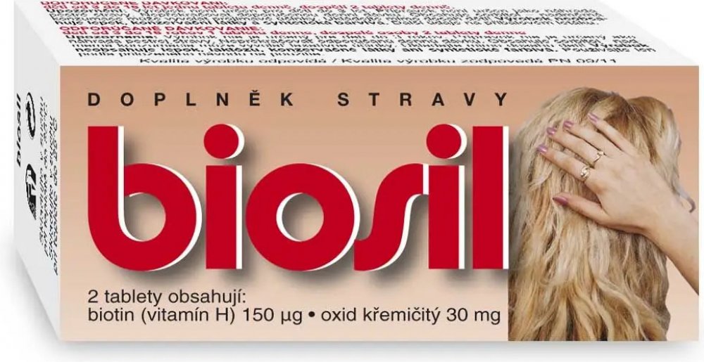 Biosil Plus je doplněk stravy, který přispívá k udržení normálního stavu vlasů, nehtů a pokožky. Výrobek obsahuje biotin a oxid křemičitý. Komfortní užívání polykacích tablet.