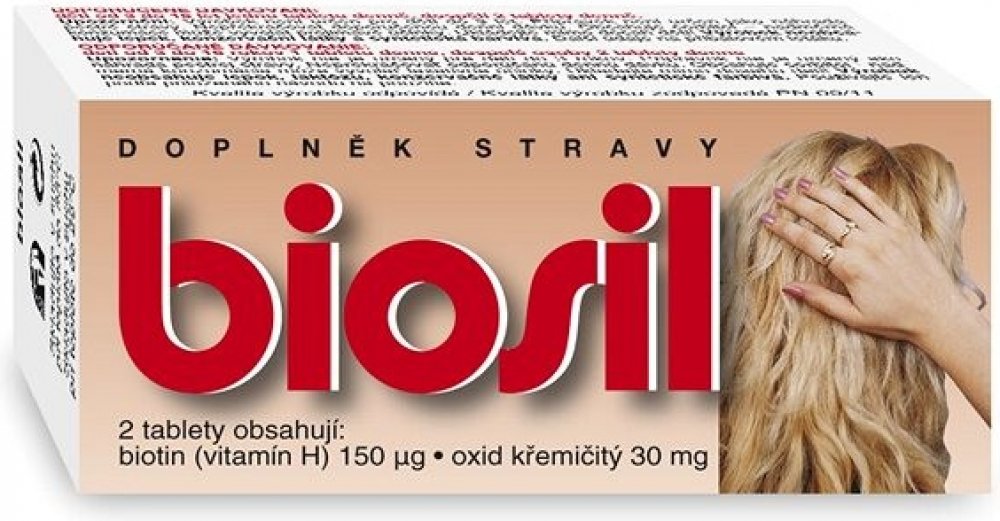 Jedna tableta obsahuje: Biotin (vitamín H) 75 mcg (150%*), oxid křemičitý 15 mg.