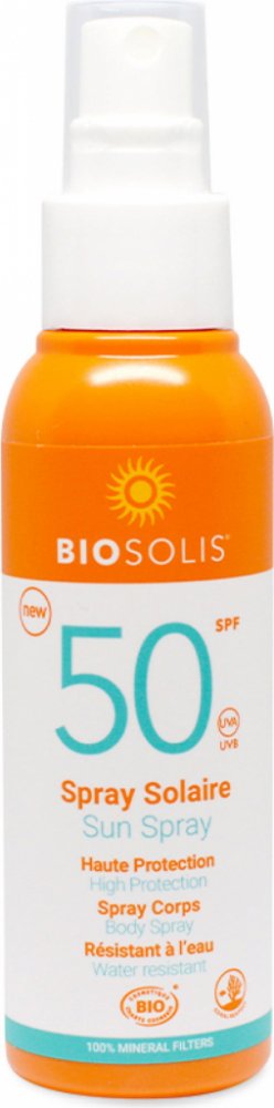 BIO Sprej s velmi vysokou ochranou proti slunečním paprskům. Biosolis Sprej na opalování s praktickým rozprašovačem a ochranou SPF 50 je vhodný na obličej i tělo. Hydratuje pokožku a díky obsahu rostlinných olejů přispívá k její regeneraci.
