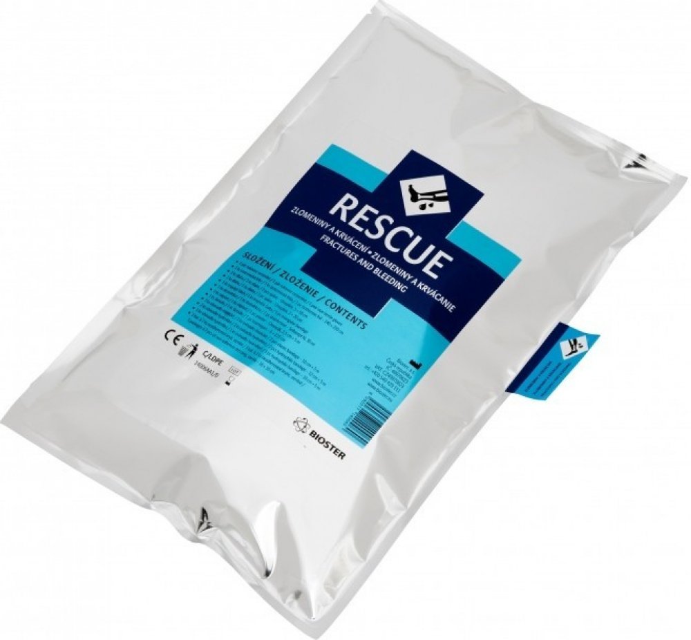 Rescue – Zlomeniny a krvácení je kompletní set pro základní ošetření různého stupně krvácení a všech typů zlomenin, včetně otevřených. Poskytuje zdravotnickému personálu i laikům dostatek vhodného fixačního a obvazového materiálu k ošetření krvácejících poranění mimo zdravotnické zařízení.