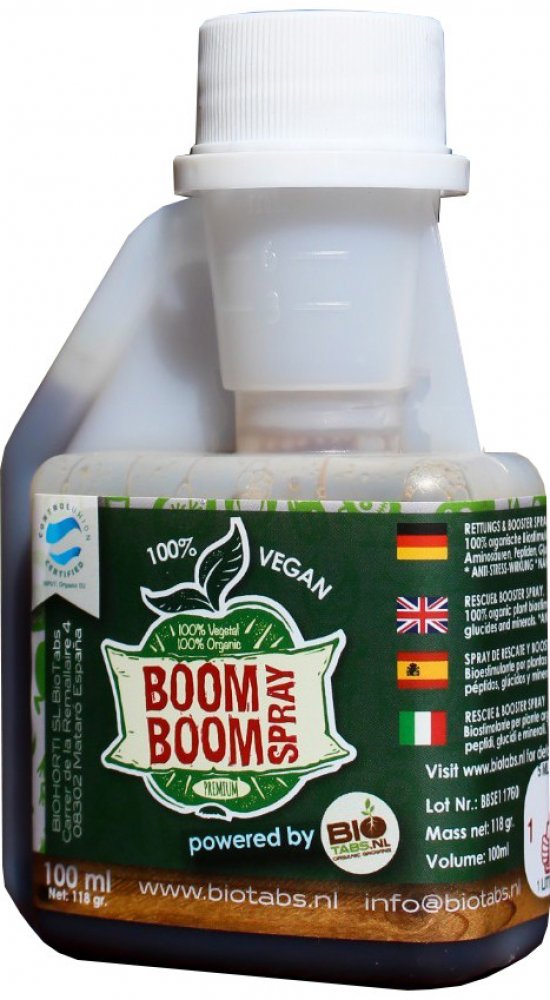 Boom Boom Spray se velmi rychle vstřebává do listů. Účinky lze pozorovat během několika hodin po aplikaci. Boom Boom Spray lze použít s jakýmikoliv hnojivy: biologickými, bio-minerálními nebo chemickými. Může být použit se všemi druhy substrátů, včetně coco i při hydroponickém pěstování.