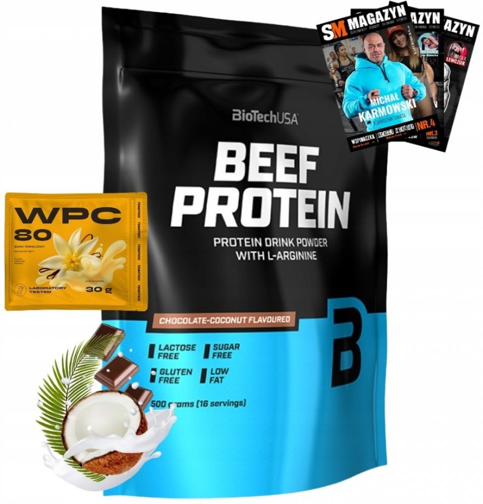 BioTech USA 500 g hovězí práškové 26.1 g 30.0 g 16 ks 118.8 kcal L-glutamin, L-arginin, sukralóza hovězí protein, kakaový prášek, glycin 12.0 g/100 ml