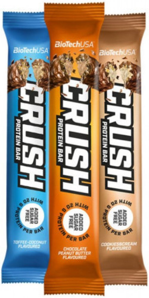 Proteinová tyčinka s krémovou náplní, křupinkami a čokoládovou polevou. Bez přidaného cukru.
