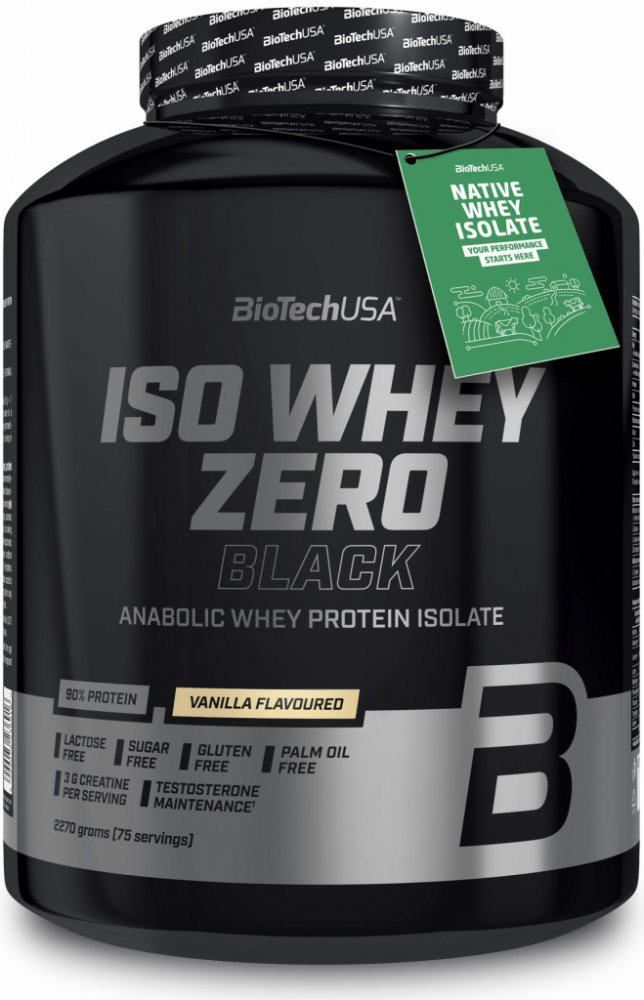 Nejprve je třeba zmínit, že BiotechUSA Iso Whey Zero Black obsahuje 90 % bílkovin nejvyšší kvality. Nativní syrovátkový izolát se vyrábí přímo z čerstvého mléka pasterizací s následnou mikrofiltrací a ultrafiltrací při nízkých teplotách, v poslední fázi je pak rozmělněn ve speciální sušárně. Díky tomuto jedinečnému způsobu je biologická hodnota bílkoviny pořád stejná, tzn. v té nejvyšší kvalitě. Schopnost vstřebávání řadí tento proteinový přípravek mezi absolutní špičku na trhu! Díky tomuto je bohatá na imunoglobin (protein, který je schopen jako součást imunitního systému identifikovat a zneškodnit cizí objekty (bakterie a viry)) a laktoferin (součást imunitního systému). Každá porce obsahuje 3 g kreatinu, což je jedna z hlavních složek pro zvýšení fyzické výkonnosti.