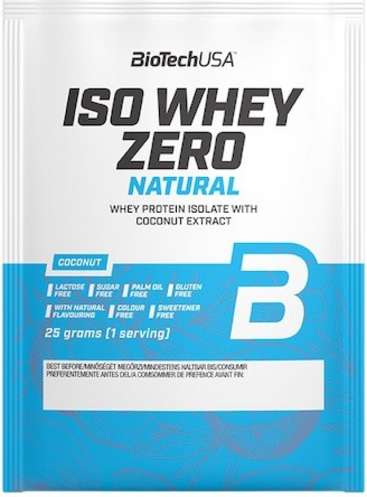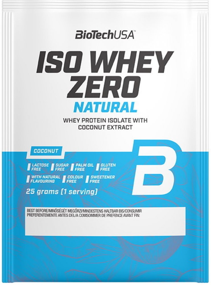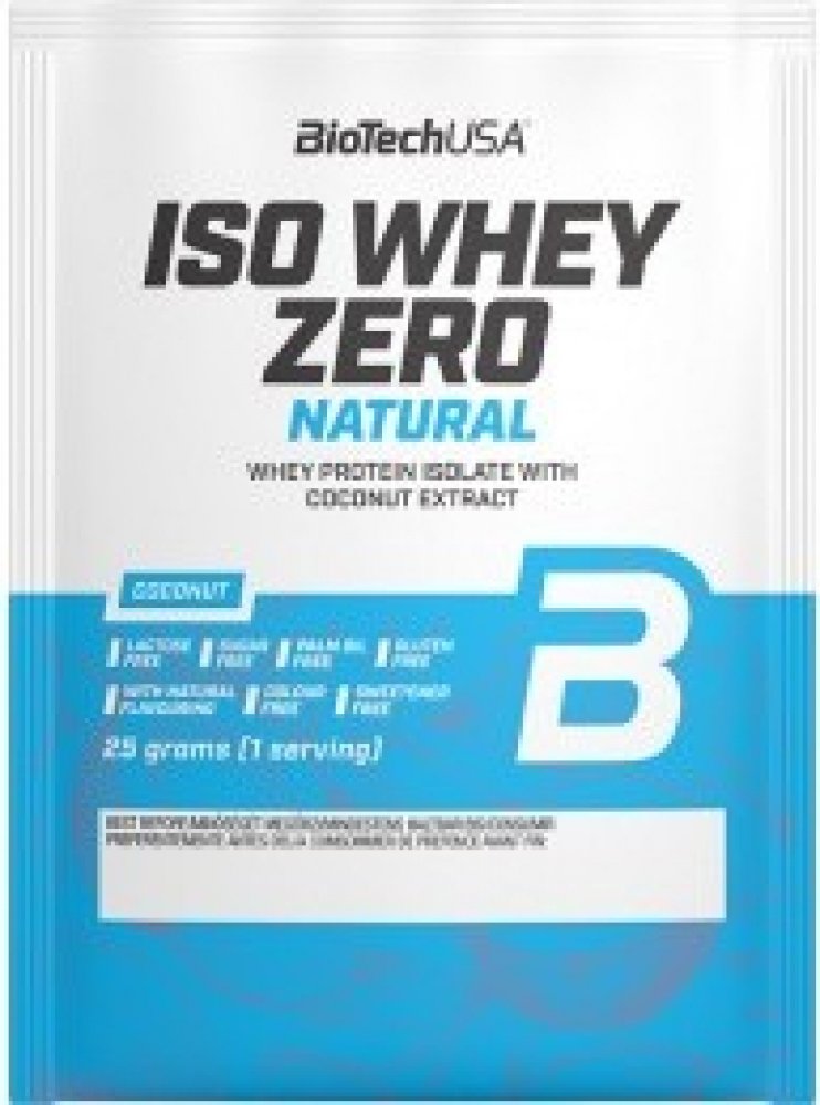 Biotech USA ISO Whey ZERO Natural je bezlaktózový protein bez sladidel dochucený extraktem z kokosu! Tento nový protein od Biotechu obsahuje 91 % kvalitního syrovátkového izolátu, což je typ proteinu s poměrně rychlou vstřebatelností. Je ideální po cvičení anebo kdykoliv během dne pro doplnění příjmu bílkovin. Izolát se také, na rozdíl od klasických koncentrátů, může pyšnit nulovým obsahem laktózy a nízkým obsahem jednoduchých sacharidů (cukrů). Ocení ho tedy lidé alergičtí na laktózu, ale i cvičenci v dietě, kteří chtějí ušetřit každý gram cukru. Proces výroby probíhá mikro a ultrafiltrací při nízkých teplotách tak, aby nedošlo k poškození struktury obsažených bílkovin. Protein je dochucený extraktem z pravého kokosu a neobsahuje žádná umělá aromata. Díky tomu nebylo potřeba použít sladidla a protein si stále zachovává plnou a lahodnou chuť. Ani na přírodu se nezapomnělo a na výrobu obalu bylo použito méně plastu. V bodech: mikro a ultrafiltrovaný izolát bez obsahu laktózy s nízkým obsahem cukru bez sladidel dochucený extraktem z pravého kokosu bez umělých aromat, barviv a konzervantů Doporučené dávkování: 1 dávka = 25 g (3 ploché lžíce) Smíchejte v šejkru 1 dávku s 200 ml vody. V tréninkovém dny užívejte 1 dávku ráno a 1 dávku přímo po tréninku. V netréninkové dny užívejte 1 dávku ráno a 1 dávku odpoledne. Upozornění: Doplněk stravy.Vhodné pro sportovce.Uchovávejte mimo dosah dětí.Není určeno pro děti, těhotné a kojicí ženy.Nepřekračujte doporučené denní dávkování.Uchovávejte těsně uzavřeno na suchém a chladném místě bez přístupu slunečního záření.Není určeno jako náhrada pestré stravy.
